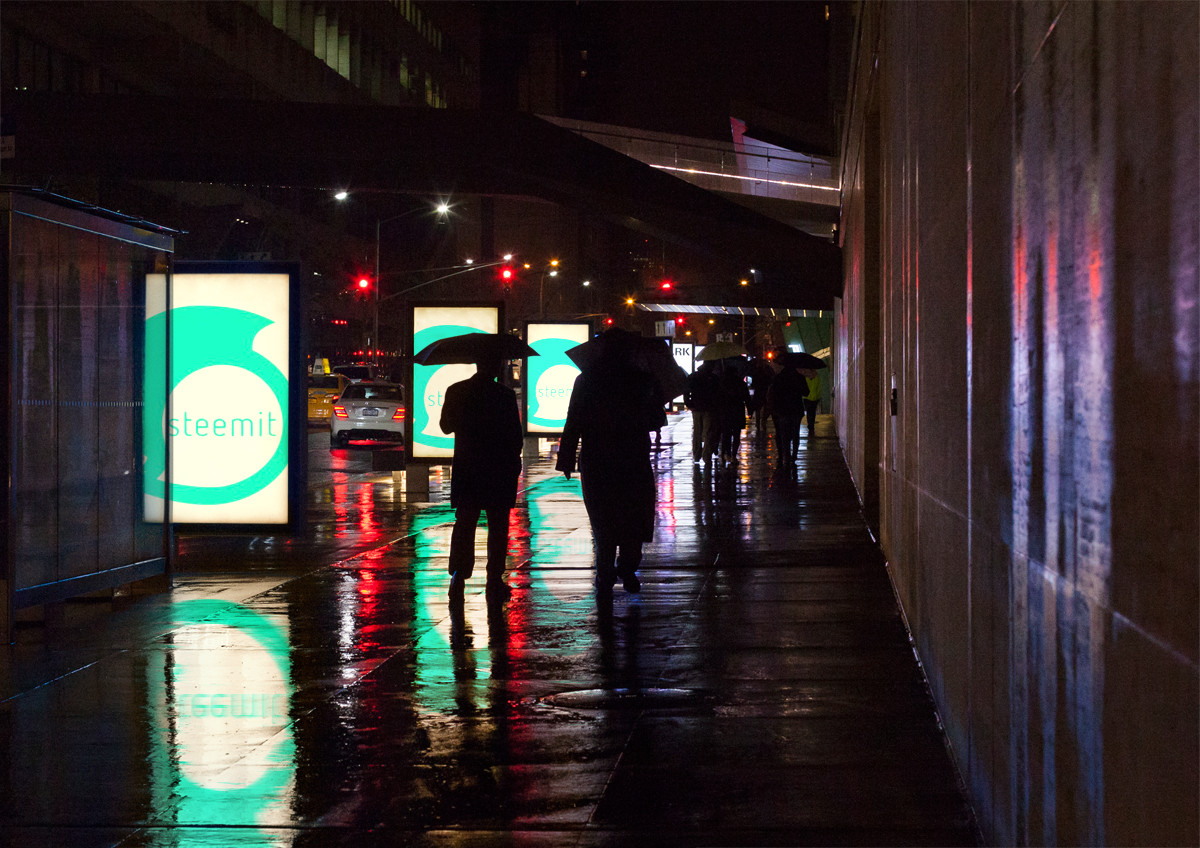 - 비오는 어두운 거리를 환하게 비춰주는 스팀잇