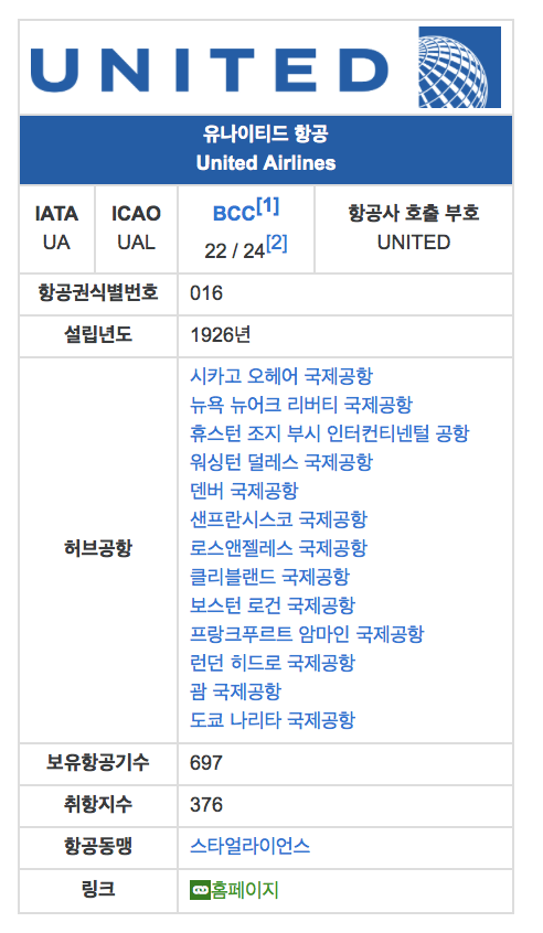 그리하여 1990년대 미국 제 1항공사로 군림하였지만, 노사 갈등 문제가 불거지던 중 2001년 9.11 테러에 항공기 2대가 휘말리면서 대위기를 맞이하고 뼈를 깎는 구조조정을 하다가 2010년 컨티넨탈 항공을 인수하여 오늘날의 로고 및 비행기 도장을 가지게 되었답니다!
