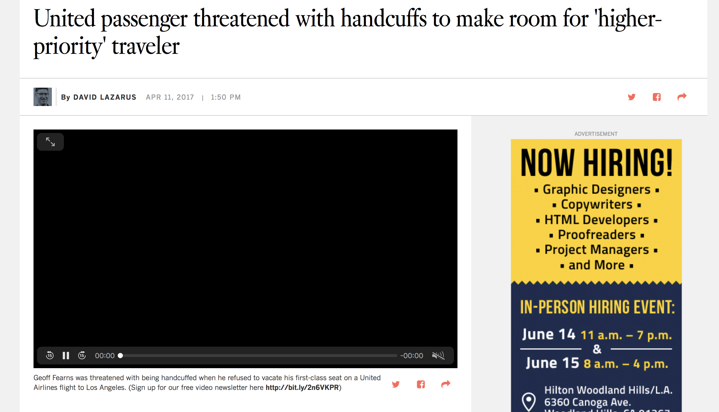 흑인 국회의원을 태우기 위해 풀페어를 낸 일등석 탑승객을 일반석으로 쫓아내었고