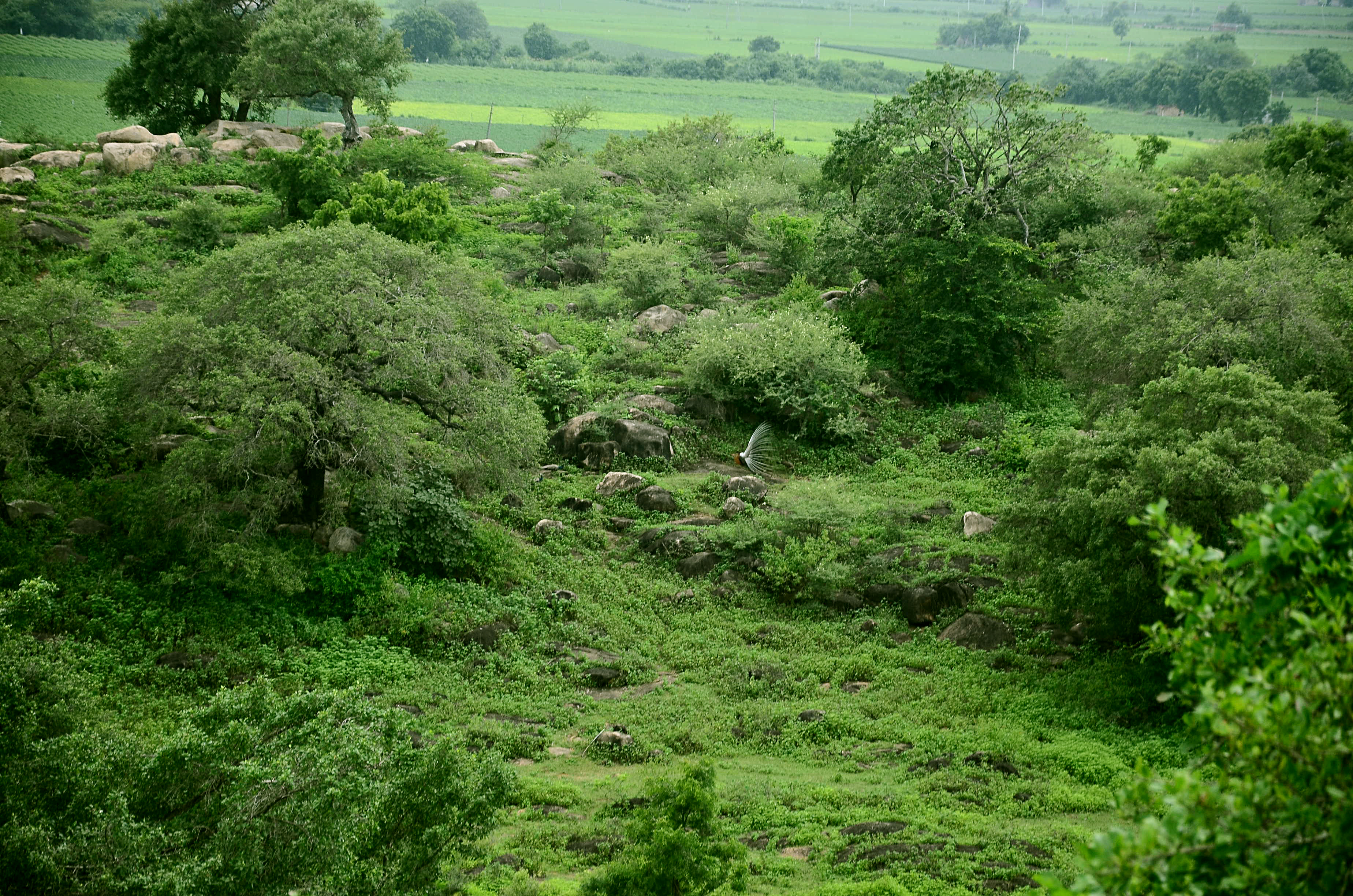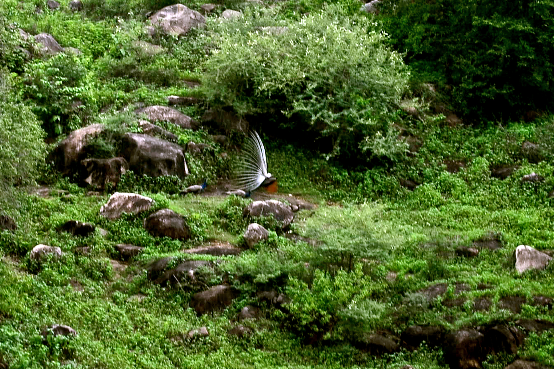 This is a photo of a forest near a temple and a peacock is seen far away in the photo, it is very far but I have tried to take a photo. I hope you like my photos.