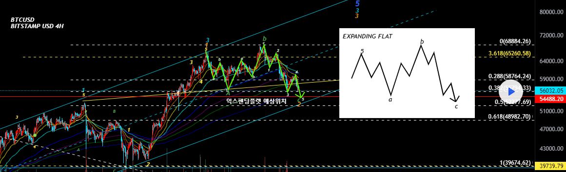 비트코인 조정은 어디까지? 익스펜딩 플랫 조정 진행중. 목표는 더 멀리