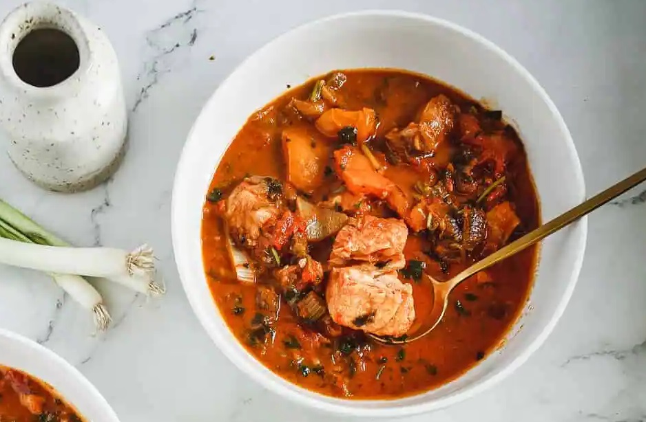 Cook the Fish: Gently place the marinated fish chunks into the stew. Simmer for about 10-15 minutes, or until the fish is cooked through and flakes easily.