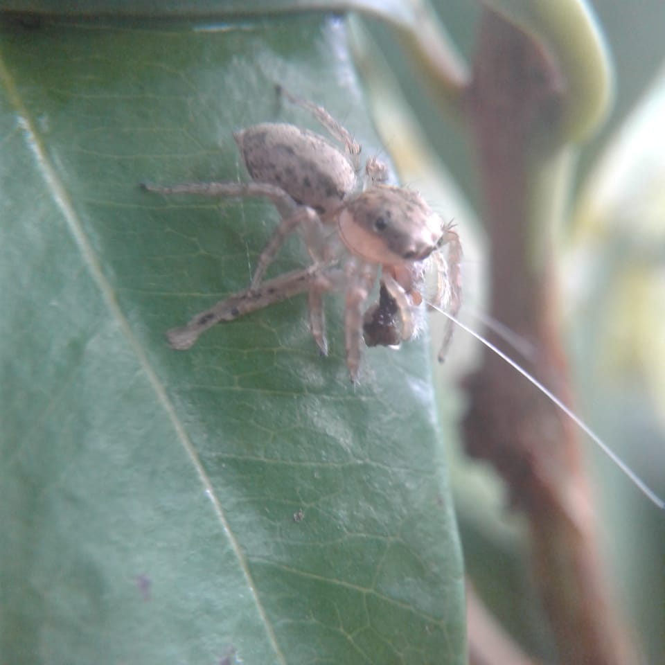 Seperti halnya laba-laba ini yang terlihat sedang memakan sesuatu di mulutnya. Karena hewan laba-laba adalah hewan predator maka uang dimakannya adalah hewan kecil lainnya yang lebih kecil dari dirinya.