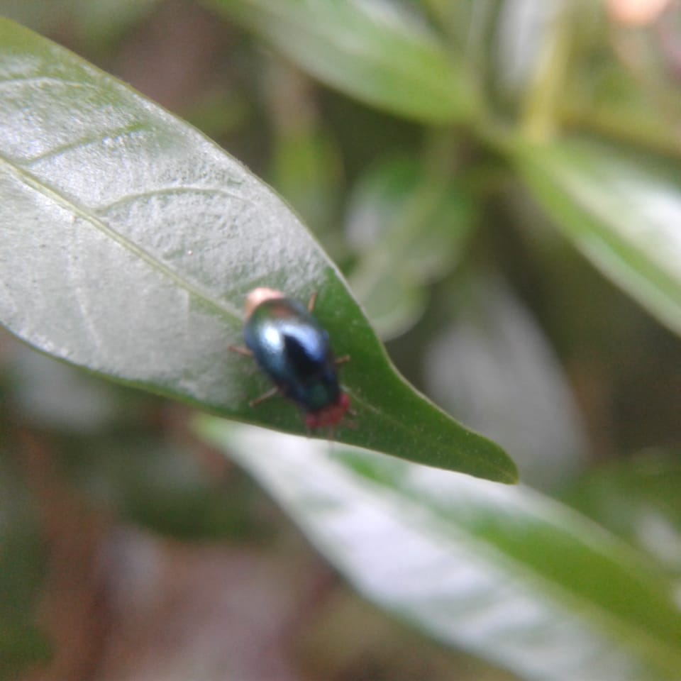 Inilah photography seekor bayi lalat bermata merah yang dilihat dari atas tubuhnya. Hewan ini terkenal sering menghinggapi tanaman untuk bersantai.