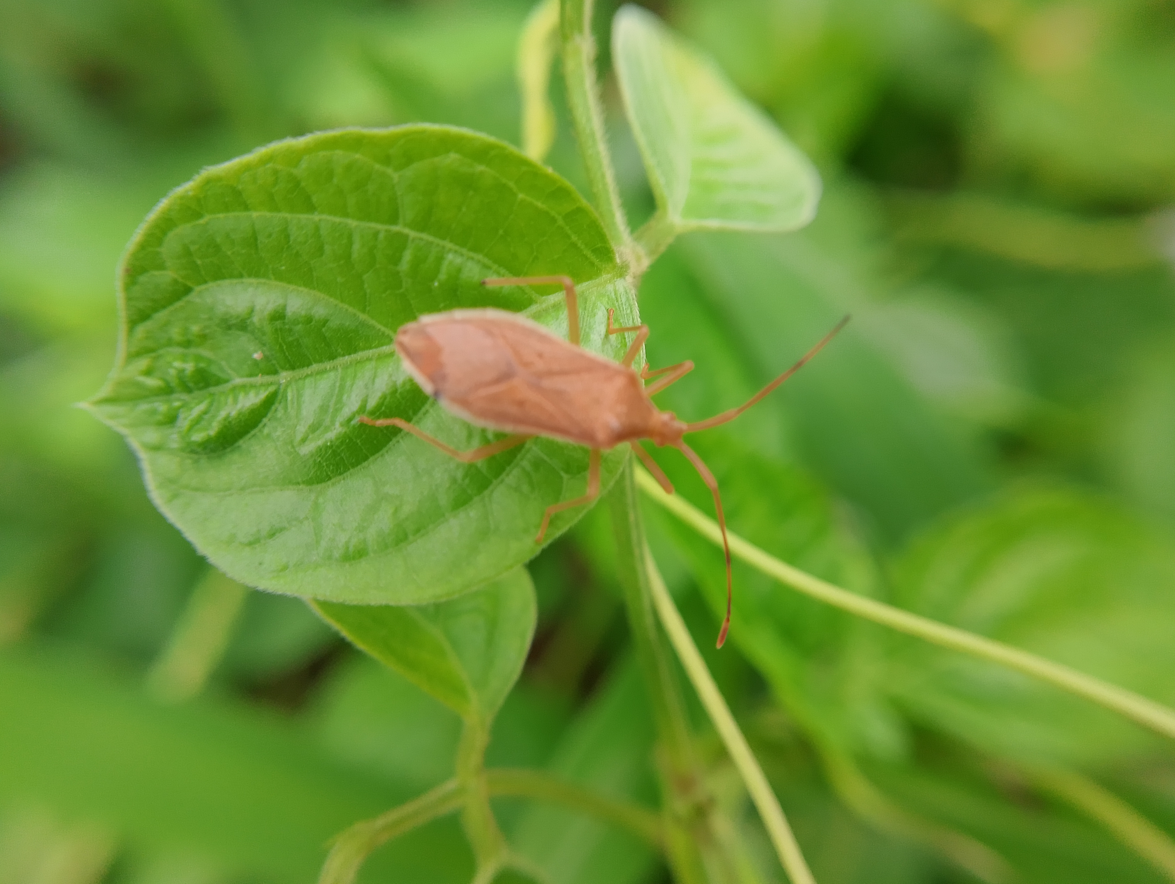 Foto ini saya abadikan kemarin ketika menelusuri area hutan dan menemui seekor serangga unik yang sedang hinggap pada bagian daun tanaman liar.