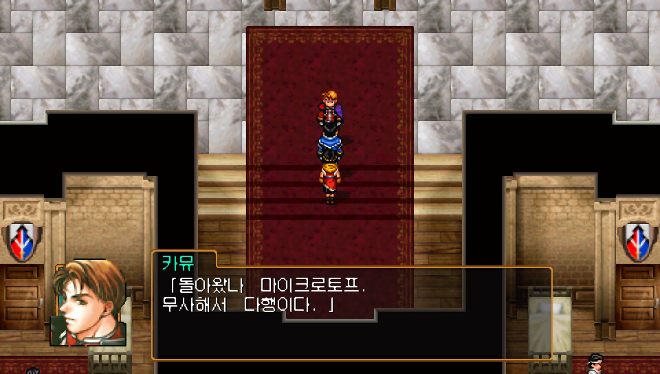 마이크로토프 : 어이, 이봐, 정신... 큭!! 네, 네 이놈!! 루카 브라이트!! 이 악행을! 절대로 용서하지 않겠다!! 리오우님, 록액스로 돌아가시죠!! 왕국군을 쓸어버리겠습니다!!