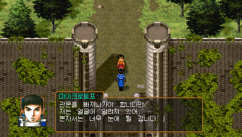 마이크로토프 : 리오우님, 당신도 뮤즈에 가시려는거군요. 부탁이 있습니다. 저도 동행시켜주시지 않겠습니까? 관문을 빠져나가야 합니다만, 저는 얼굴이 알려져 있어서, 혼자서는 너무 눈에 띌 겁니다.