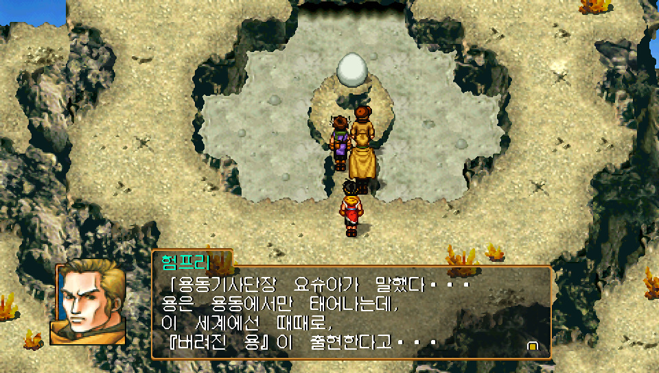 험프리 : 용동기사단장 요슈아가 말했다... 용은 용동에서만 태어나는데, 이 세계에선 때때로, [버려진 용] 이 출현한다고... 그 이유를 알 수 있다면, 새 용을 얻을 수 있을지 모른다. 크리스탈 밸리의 "하나의 신전" 으로 향했던 것도 그 이유를 조사하기 위해서였다만... 이런 곳에서...
