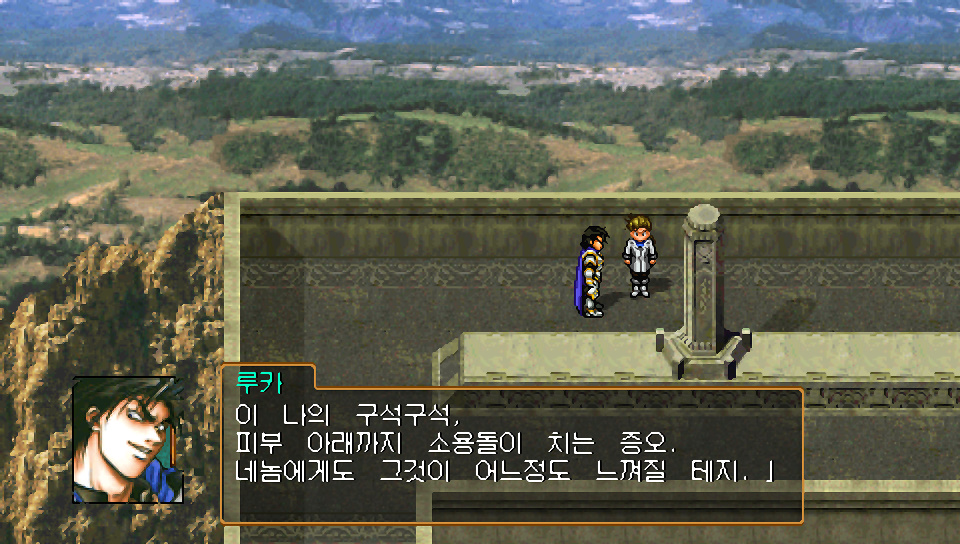 루카 : 네녀석은 재미있는 놈이다. 돼지들과는 다른 눈을 하고 있지. 이 나의 구석구석, 피부 아래까지 소용돌이 치는 증오. 네놈에게도 그것이 어느정도 느껴질 테지.