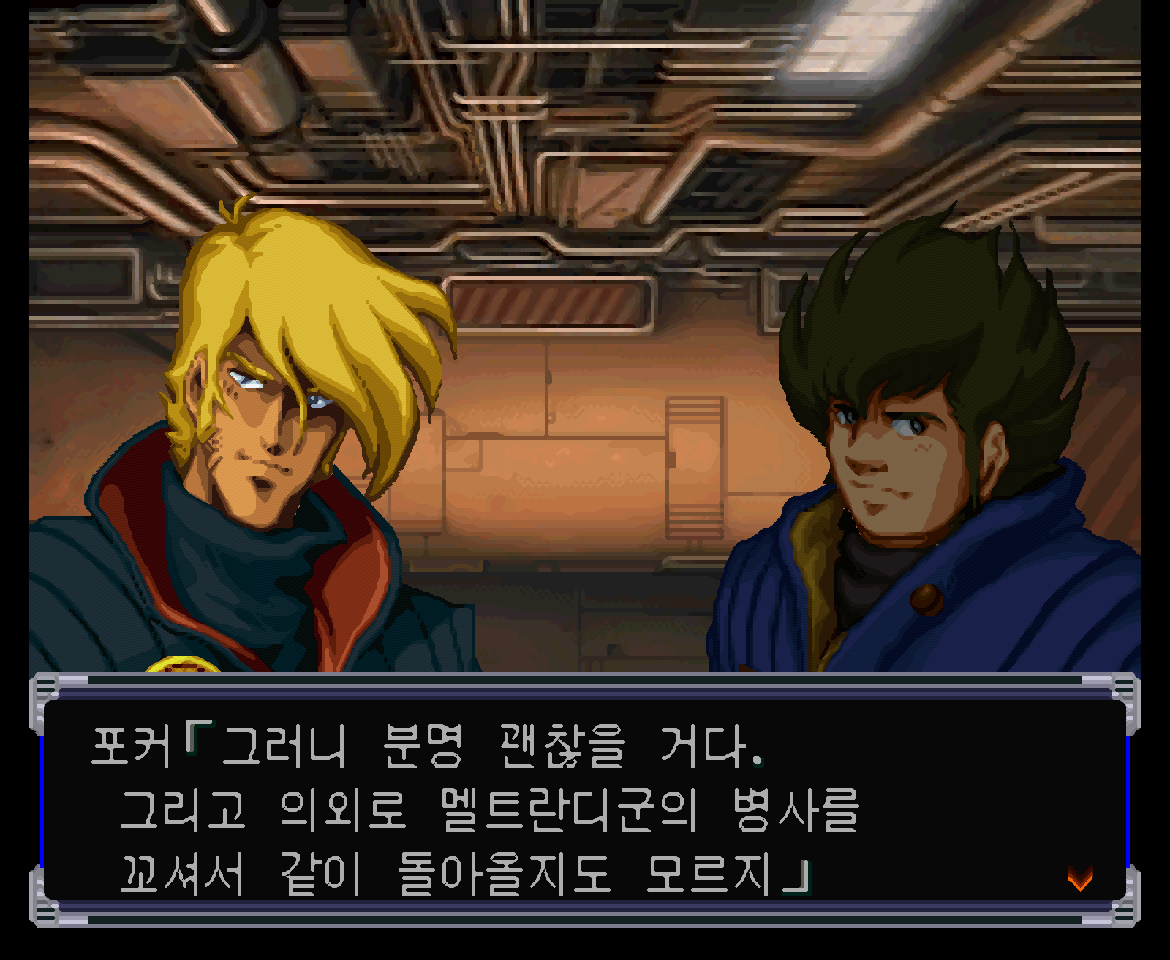 포커 : 그 녀석은 그렇게 쉽게 죽지 않아. 너도 무사했고 민메이조차도 살아서 마크로스에 돌아왔다... 그러니 분명 괜찮을 거다. 그리고 의외로 멜트라디군의 병사를 꼬셔서 같이 돌아올지도 모르지.