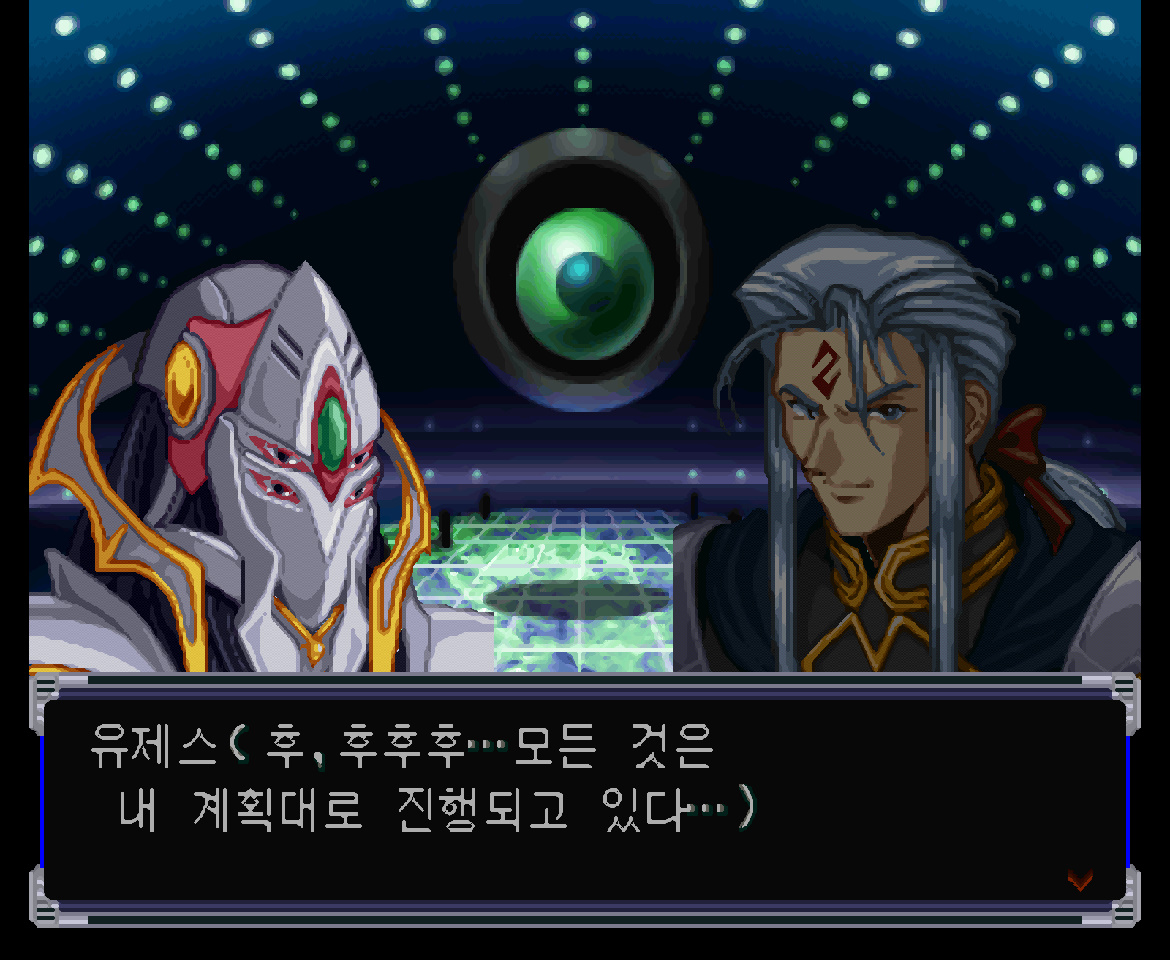 유제스 : (...지구인이 프로토 컬쳐 직계의 인종이라면 거인들은 지구에 손대지 않을 것이다. 그들은 프로토 컬쳐와 닮은 종족이 사는 별에 대해서 경계심을 가지도록 프로그램 되어 있을 테니까. 그리고 그 증거로 아직 그들은 지구로 직접 공격을 하진 않았다... 후, 후후후... 모든 것은 내 계획대로 진행되고 있다...)