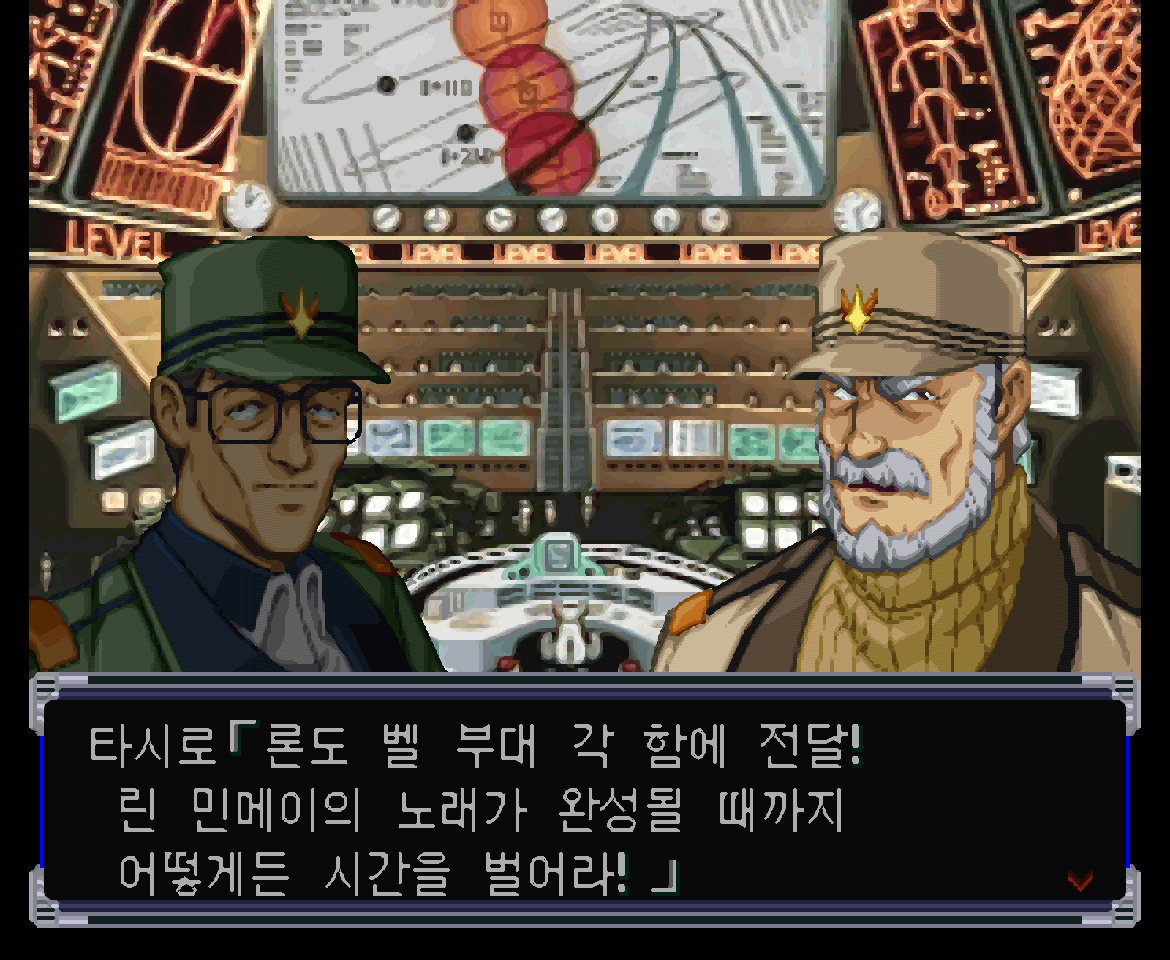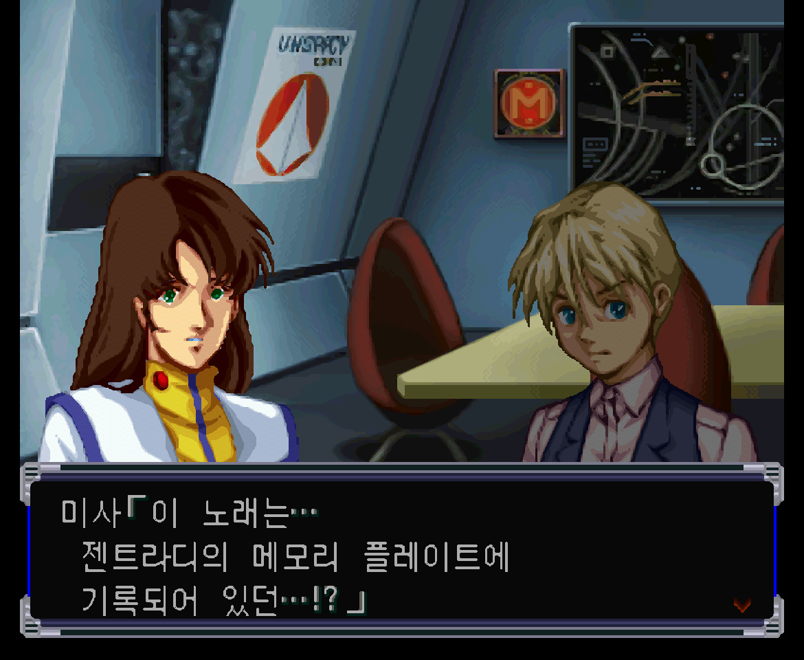 이골 : 음... 마크로스와 엑셀리온이 지구 측 전력의 요점이 된 이상 그 계획은 중지나 마찬가지지만... 최근 일반시민들까지 지구탈출계획이 화제가 되어서 각지에서 혼란이 일어나기 시작했네.