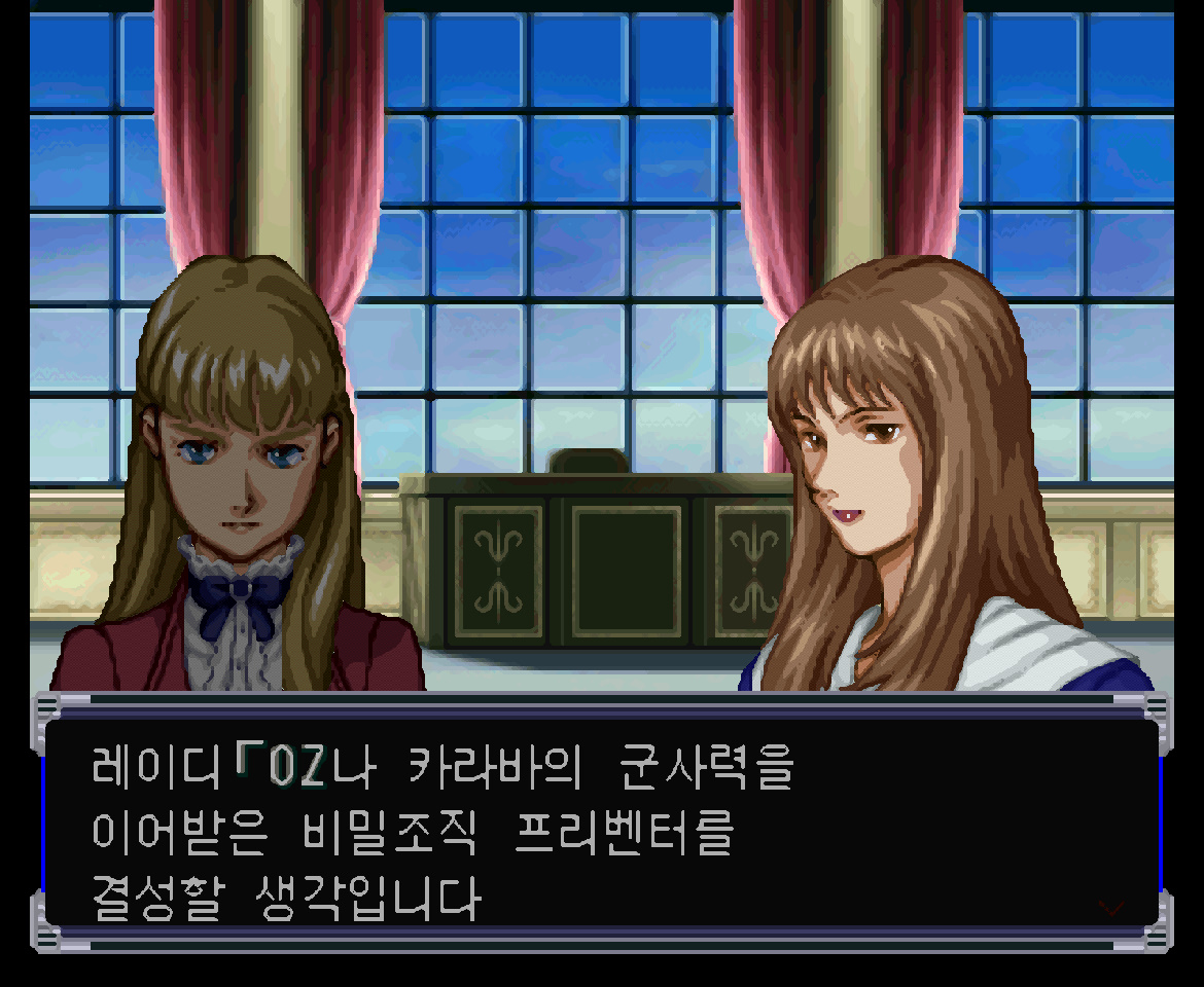 레이디 : ...그렇습니다. 티탄즈가 부활하고... 롬펠러 재단은 여전히 암약을 이어가고 있습니다... 전 트레즈 님의 유지를 이어... SDF와 론도 벨 부대의 행동으로 얻을 수 있었던 미래를 지키기 위해... OZ나 카라바의 군사력을 이어받은 비밀조직 프리벤터를 결성할 생각입니다.