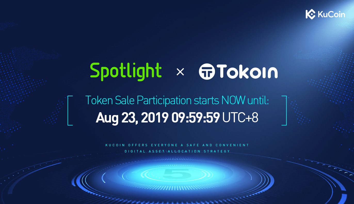 A days ago, kucoin made a declaration with respect to the token sale for the fifth project on spotlight to be specific Tokoin. According to them the token sale will last and will be starting the fifth round on August 23, 2019.