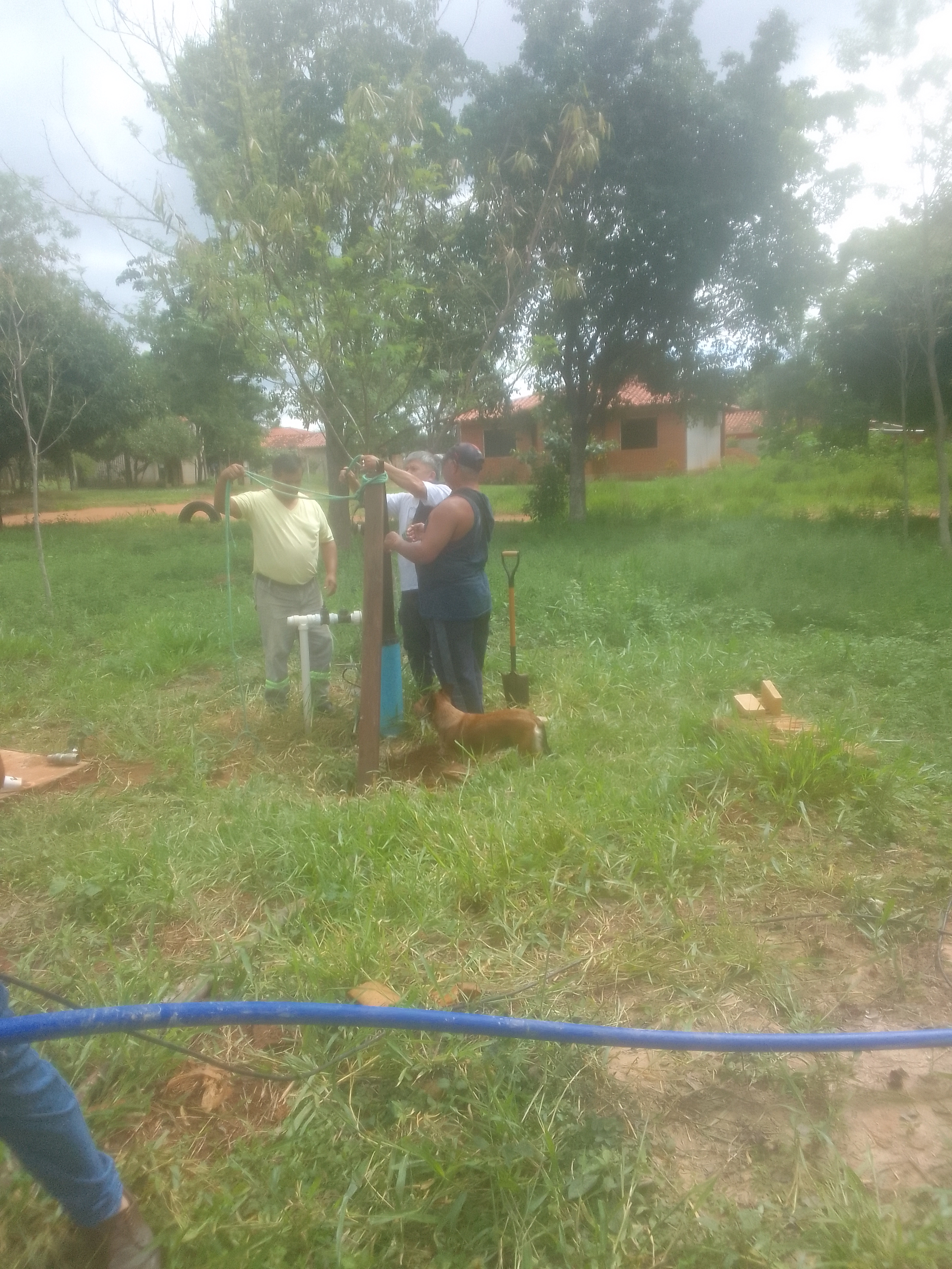 Con mas de 19 personas nos ayudamos y juntamos dinero y nos ayudamos para sacar y meter una distancia de 130 metros de caños, cables y piola.