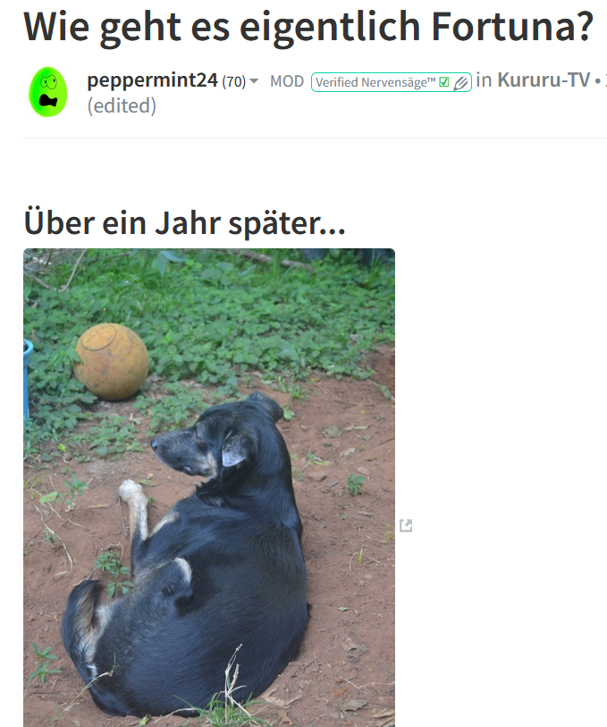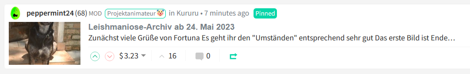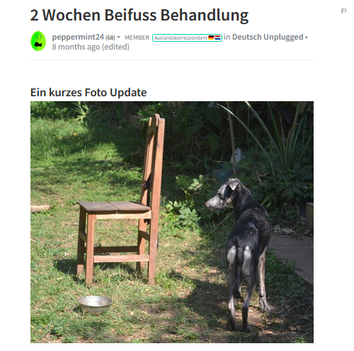 Dieser Post ist "nur" eine aktuelle Zusammenfassung der "Leishmaniose Reise von Fortuna" und soll das Archiv sein (werden), das dann als eine Art Inhaltsverzeichnis auch immer aktualisiert wird. Erstens reicht dann bei jedem neuen Beitrag ein Link zu diesem Post und Zweitens spart es das Up-daten der vorherigen Berichte.