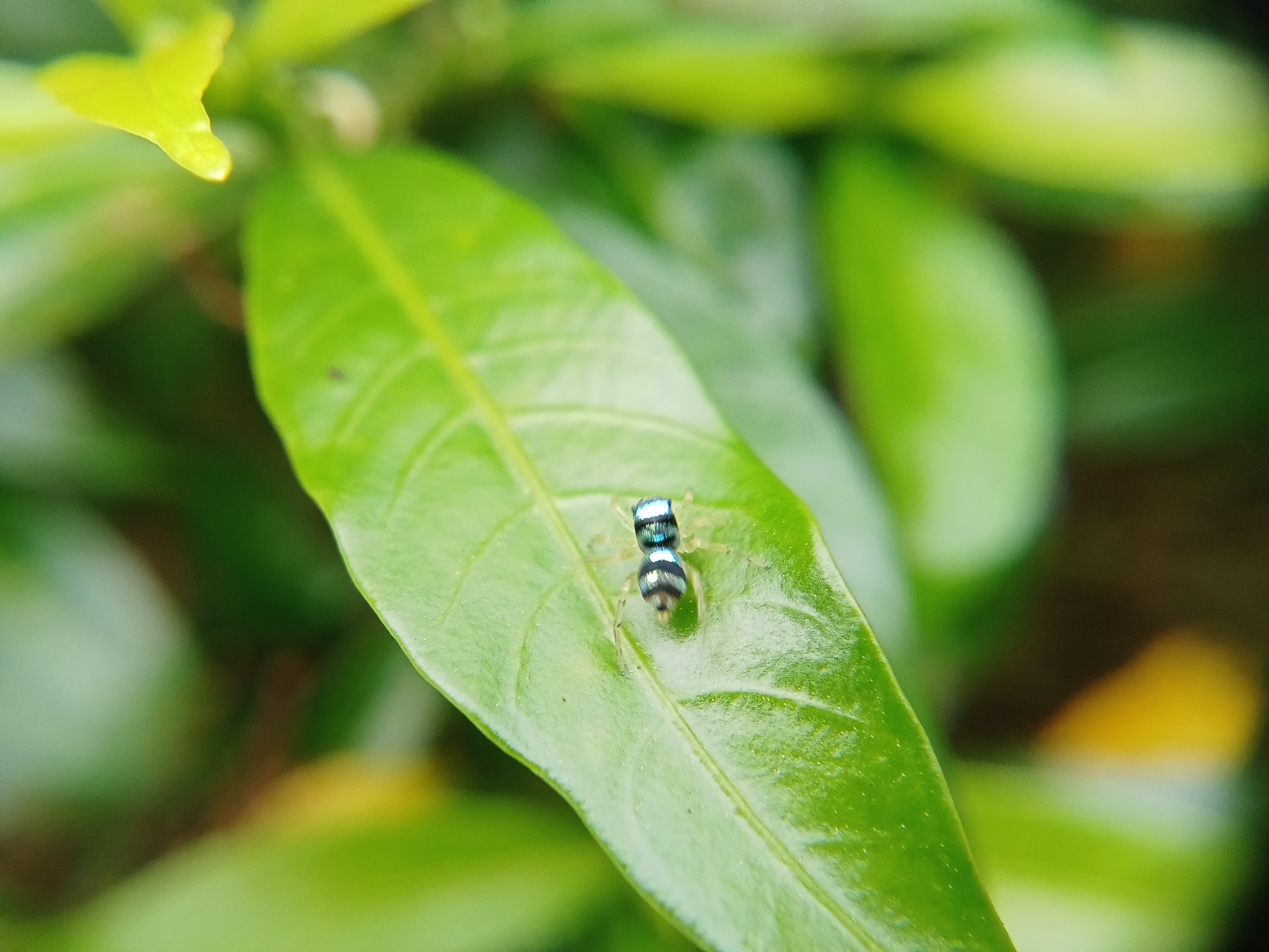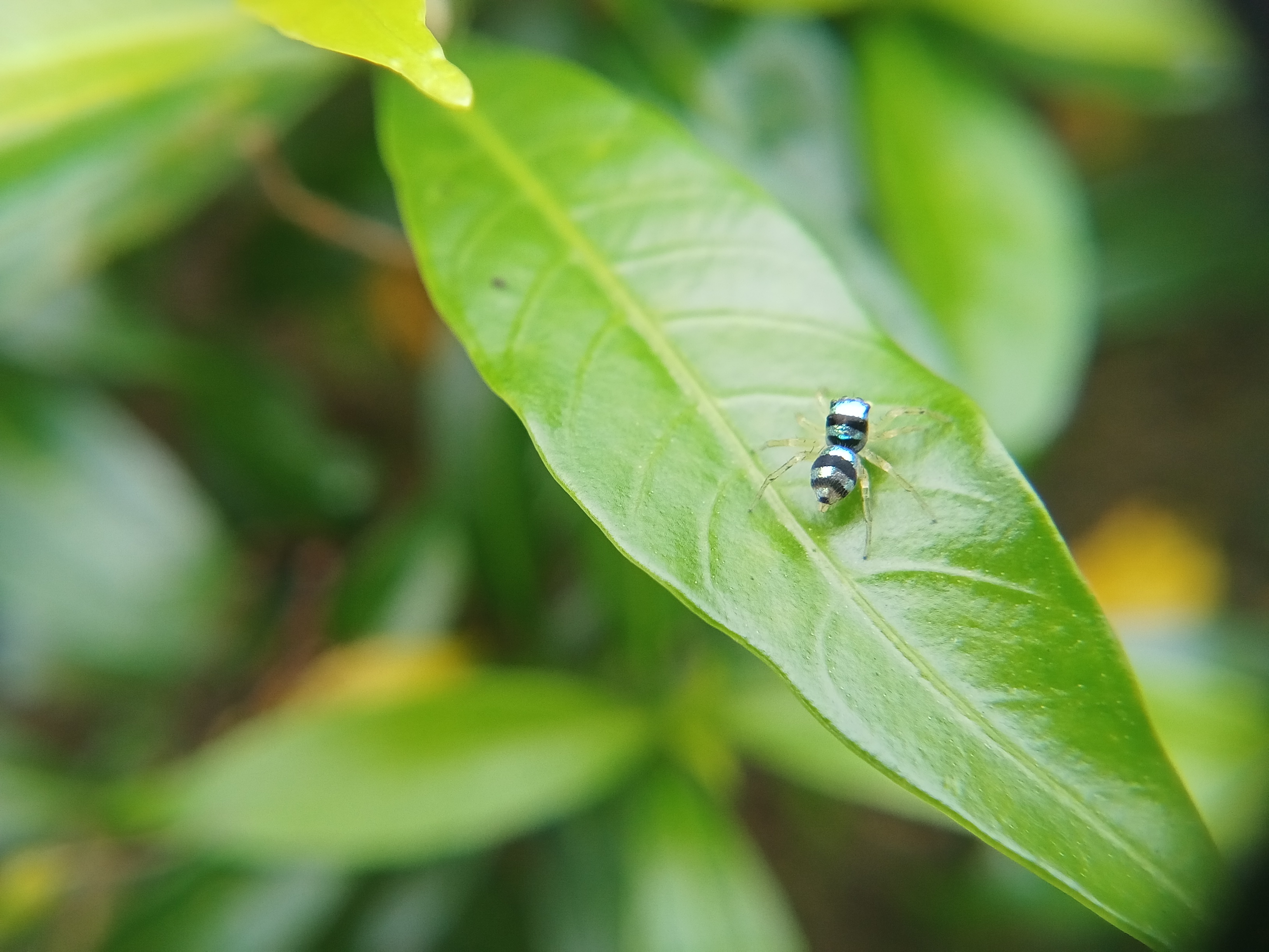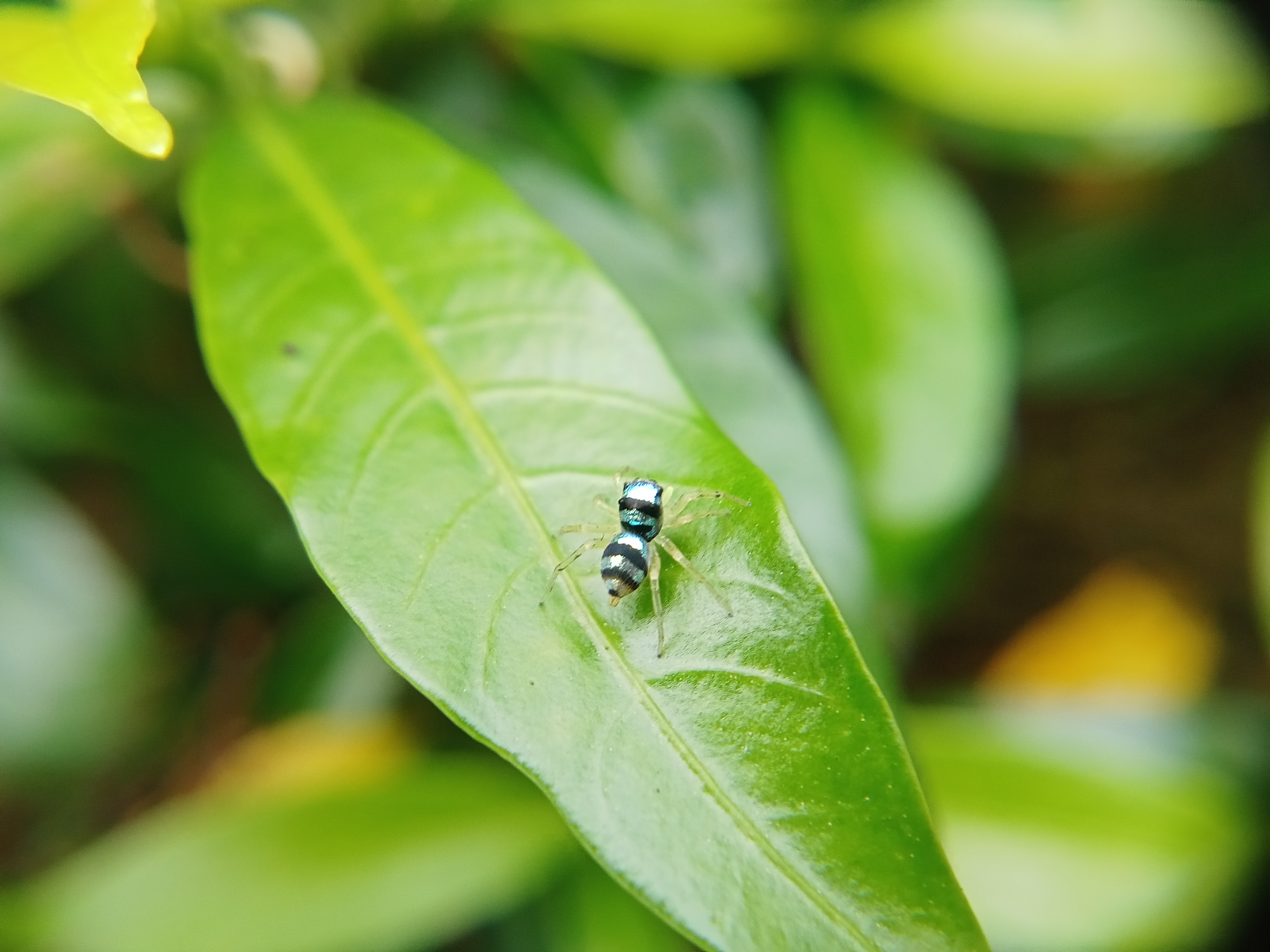Ini adalah seekor laba-laba kecil yang memiliki warna tubuh yang sangat unik. Hewan ini akan berkilau bila tertimpa sinar matahari layaknya seperti berlian yang bercahaya.