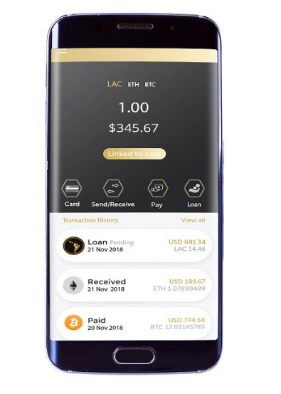 Laccoin, bir mobil cüzdan kullanan bir Ethereum destekli kripto para birimidir. Bireysel kullanıcılar kripto paralarını ve LAC tokenlerini mobil cüzdanları ile veya Laccoin ön ödemeli banka kartlarıyla kullanabileceklerdir. Laccoin'ın uygulama alanı Latin Amerika ve Karayipler olacaktır.