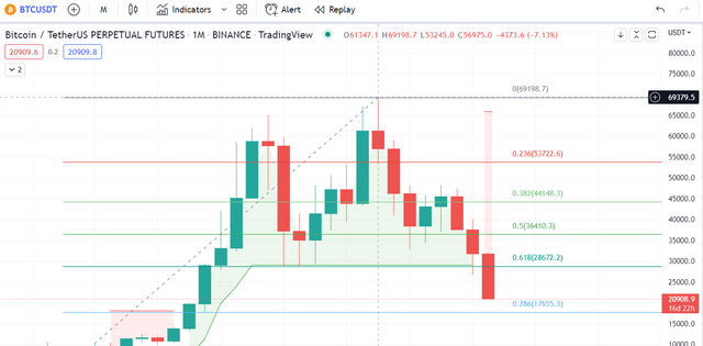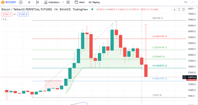 **#BTC will now reach the November 2020 level of $17655 on the monthly chart, currently trading at $21015. **