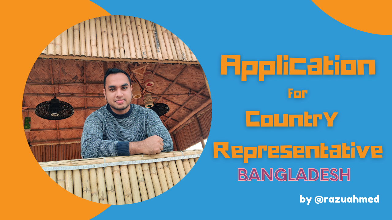 Hello, this is Razu Ahmed from Bangladesh. I am a Diploma Engineer. Currently I am completing B.Sc in Mechanical Engineering. I want to be a country representative for my country Bangladesh.