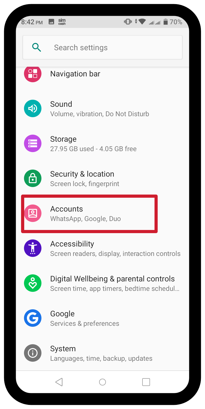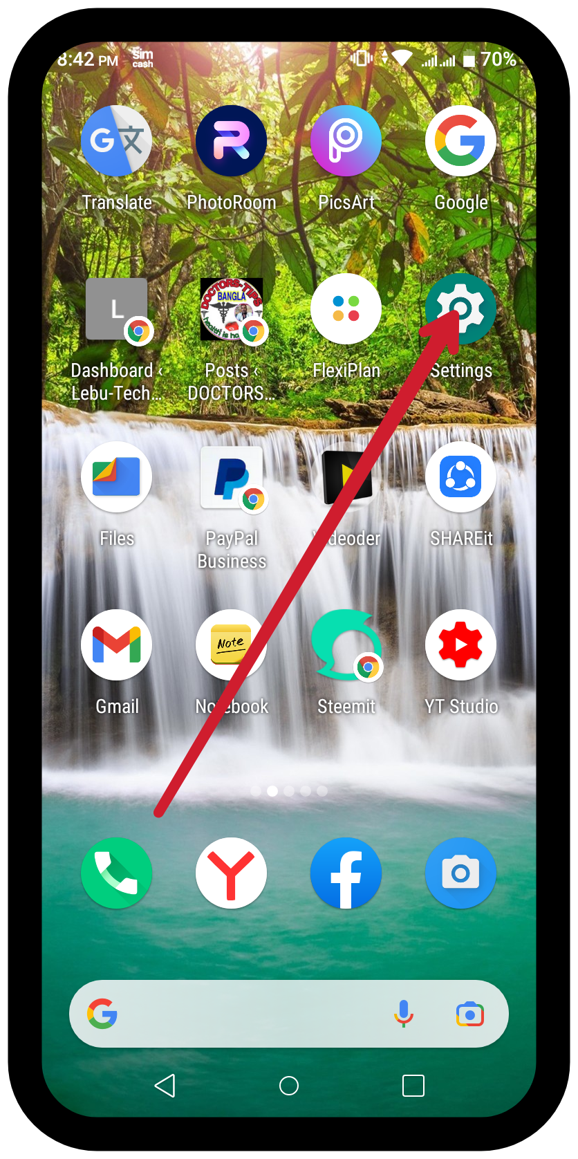 First we will press the phone's settings app like the photos below.