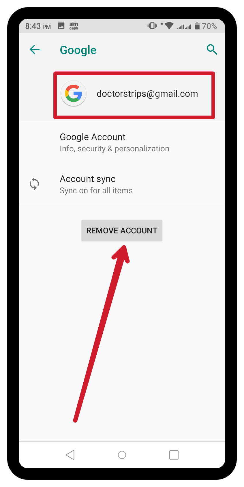 Then a button called Remove Account below email, there will be clicked on the following photos.