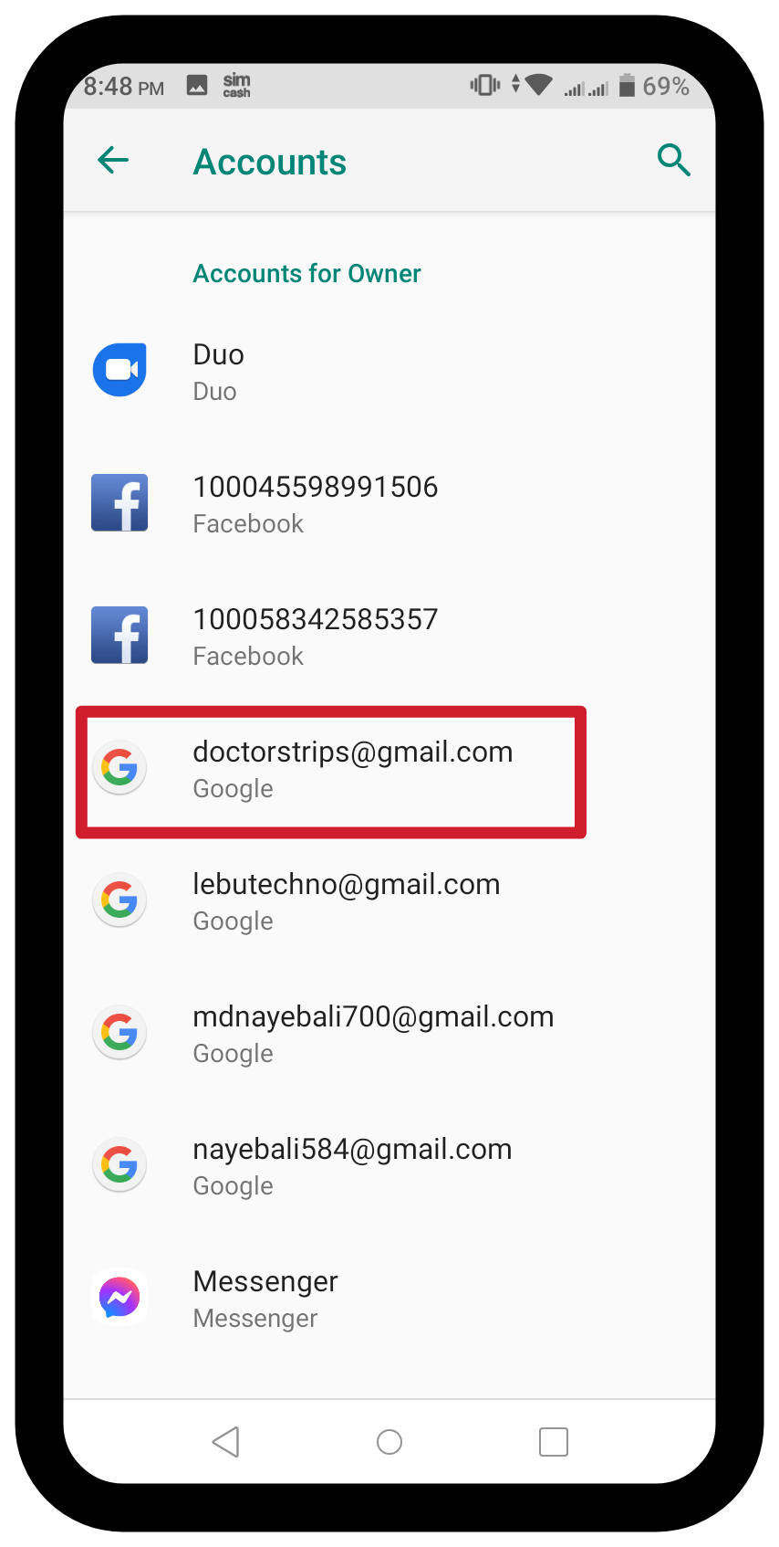 All the lists used in the phone will come. Tap the email that will delete there. See the place in the photo below.