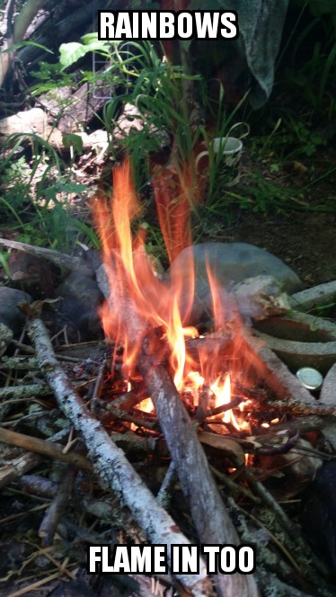 Gaia likes medicine here, grandmother tree grows magic mushrooms for my personal entertainment ceremony. The last legal campfire of spring burned just the other day, the forest is closed to deliberate camping flames due to weather manipulation.