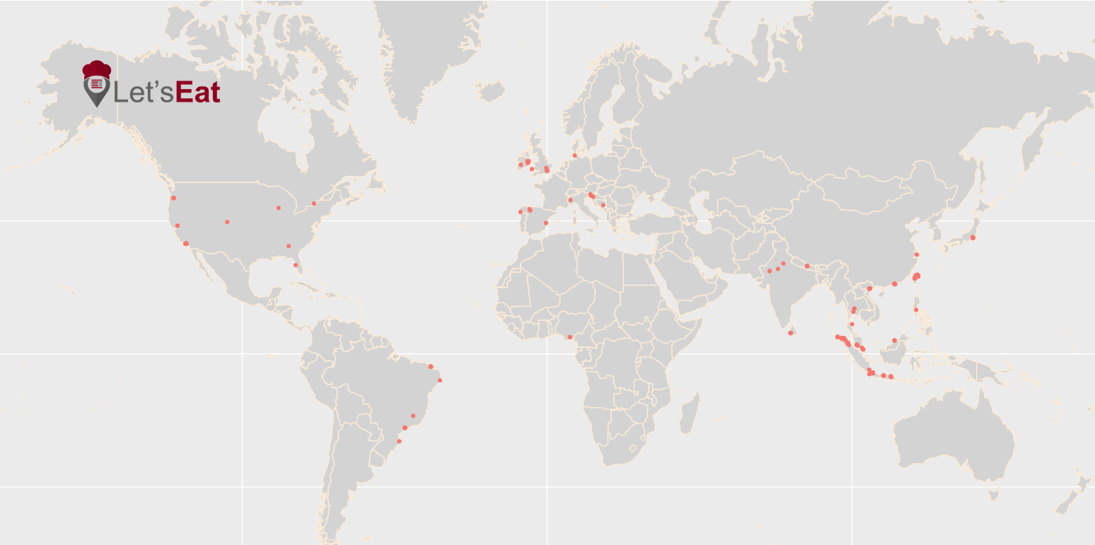 The map shows reviews using the #letseat tag