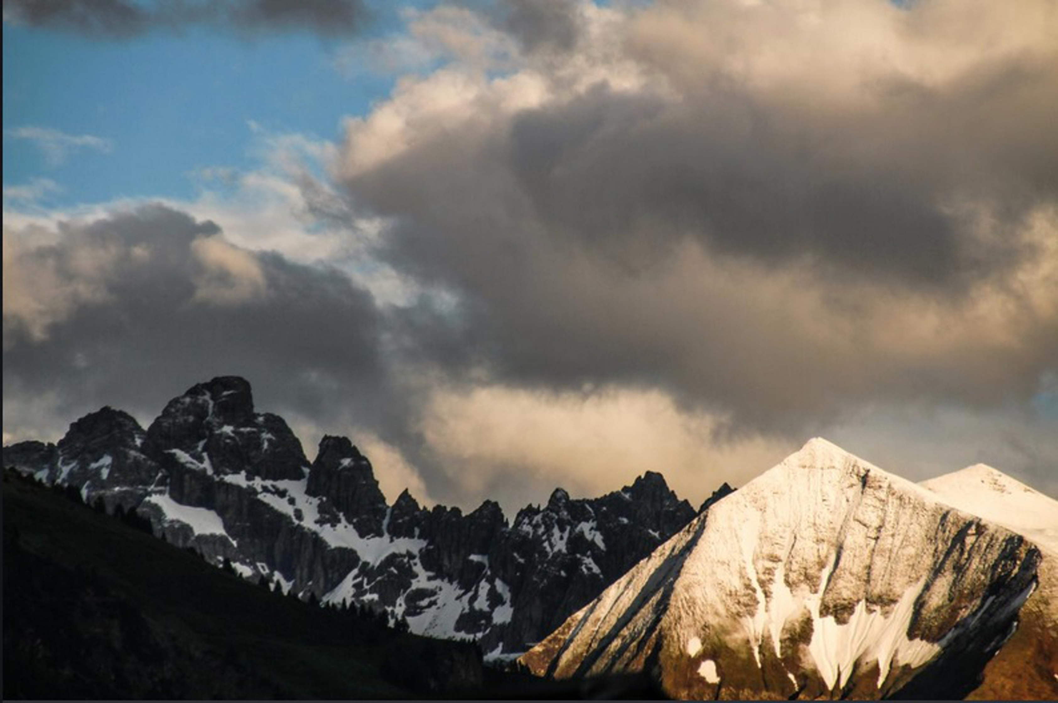 My collage was developed from two pictures. From @shaka's photo I made a mirror image to create the illusion of a mountain chain. Then I downloaded the picture of a camel caravan from Pixabay:(credit Nikola Belopitov)