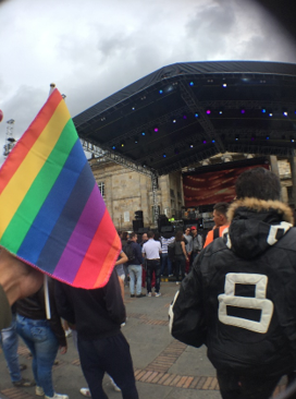 Debo agradecer a la gobernación de Bogotá y la mesa de trabajo LGBT de Bogotá, bajo el tema “elijo ser deseo vivir”, y de forma relevante debo reflejar en mi escrito el respeto de parte de toda la población de Colombia, además de comentarios bastante incluyente de parte de personas que fueron tomadas por sorpresa y algunas otras con asombro por el hecho de formar parte indirecta de la marcha de orgullo gay ya que se encontraban en la plaza donde fue el concierto y a mi parecer algunas personas parecían disfrutar de la música y no les parecía incomodar los diversos estilos de vida que representaban la amplia gama de grupos pro-homosexualidad y como no todo es perfecto también observe uno que otra pareja discutiendo acaloradamente por diversas razones y a esas parejas me gano la idea de que si vas a una marcha de estas y tu pareja ve a otra persona o consigue algunos amigos respira y vive el momento con tranquilidad y comprensión por que los celos o el egoísmo pueden hacer que un buen momento y buenas intenciones se convierta en algo tedioso hasta para tu acompañante “ pues se supone que vas en apoyo a la comunidad en general y pasarla muy bien.