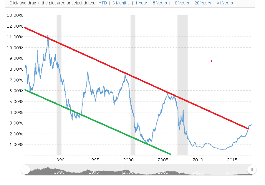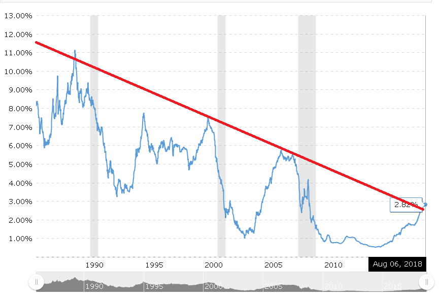 This shows that LIBOR has been on a clear downward trend since probably the 70’s if not before.