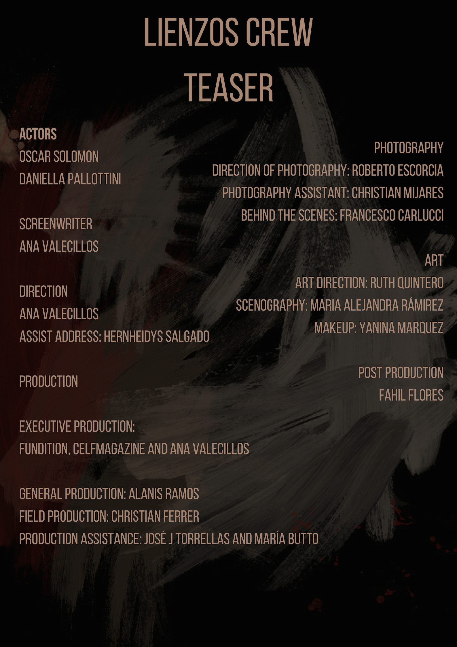 También queremos también agradecer a Fahil, que nos acompaño en este pequeño proceso que fue el Teaser y por ser parte de proyectos universitarios y creer en nosotros. Les invitamos a ver su trabajo realizado en el trailer de Hijos de la Sal y por ultimo a UNEARTE por prestarnos la locación y equipo de iluminación, como también por ser la casa de estudios de donde venimos.