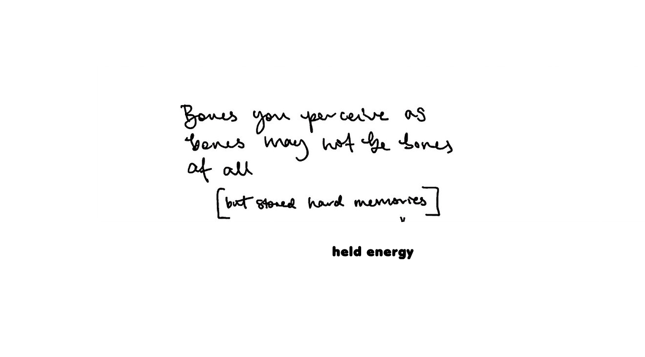 Feeling anywhere in the body where you perceive bones to exist.