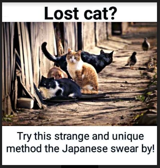 “My cat escaped two days ago and didn’t return, but somebody on Twitter said, ‘Talking to cats in the neighborhood and saying to them, ‘If you see my cat, please tell it to come home’ is an effective technique.’ So last night, I went to the local convenience store and gave it a try by speaking to the stray cats there, and then this morning our cat returned to the front of our house. Um…is it seriously this effective?”