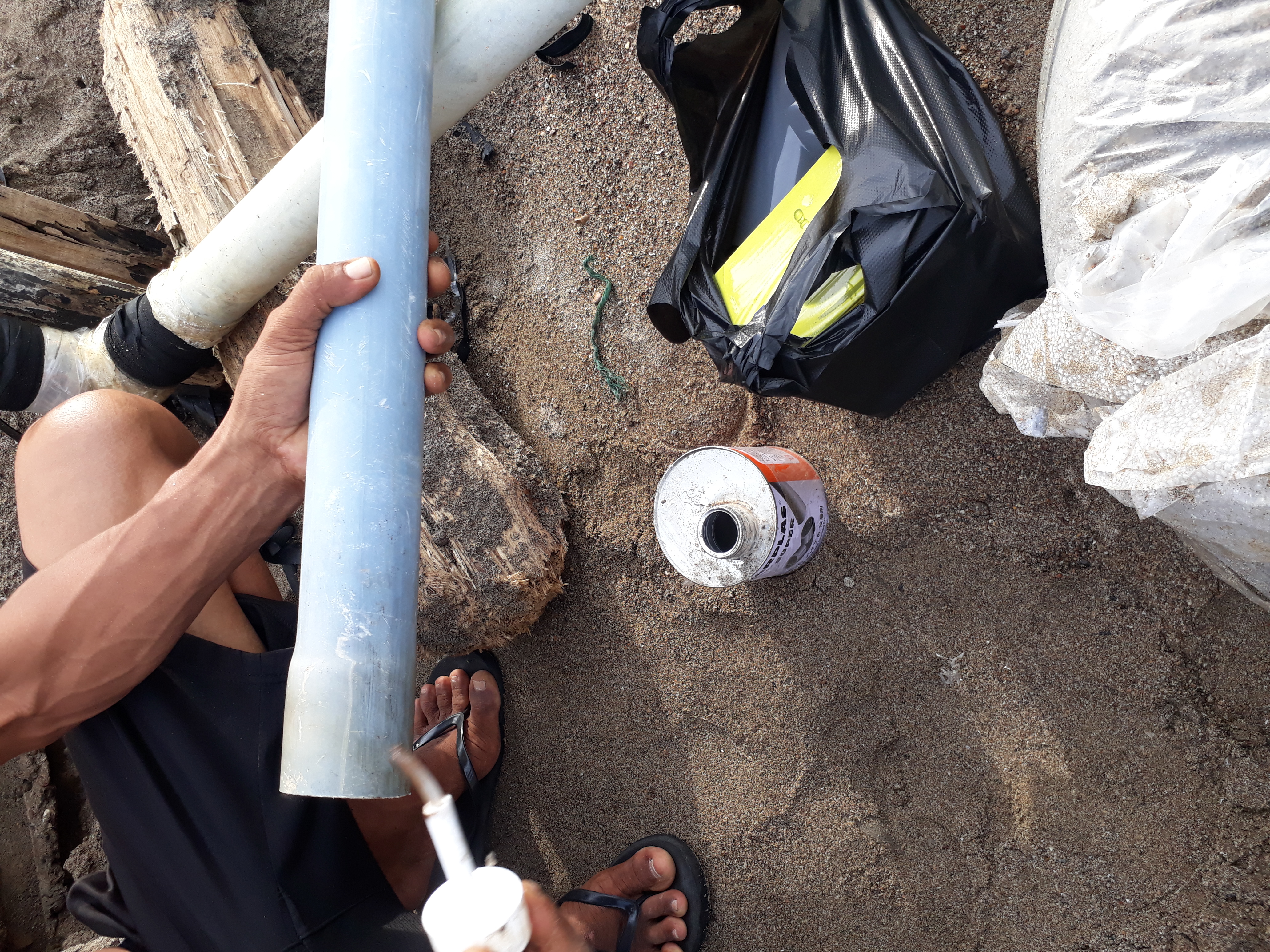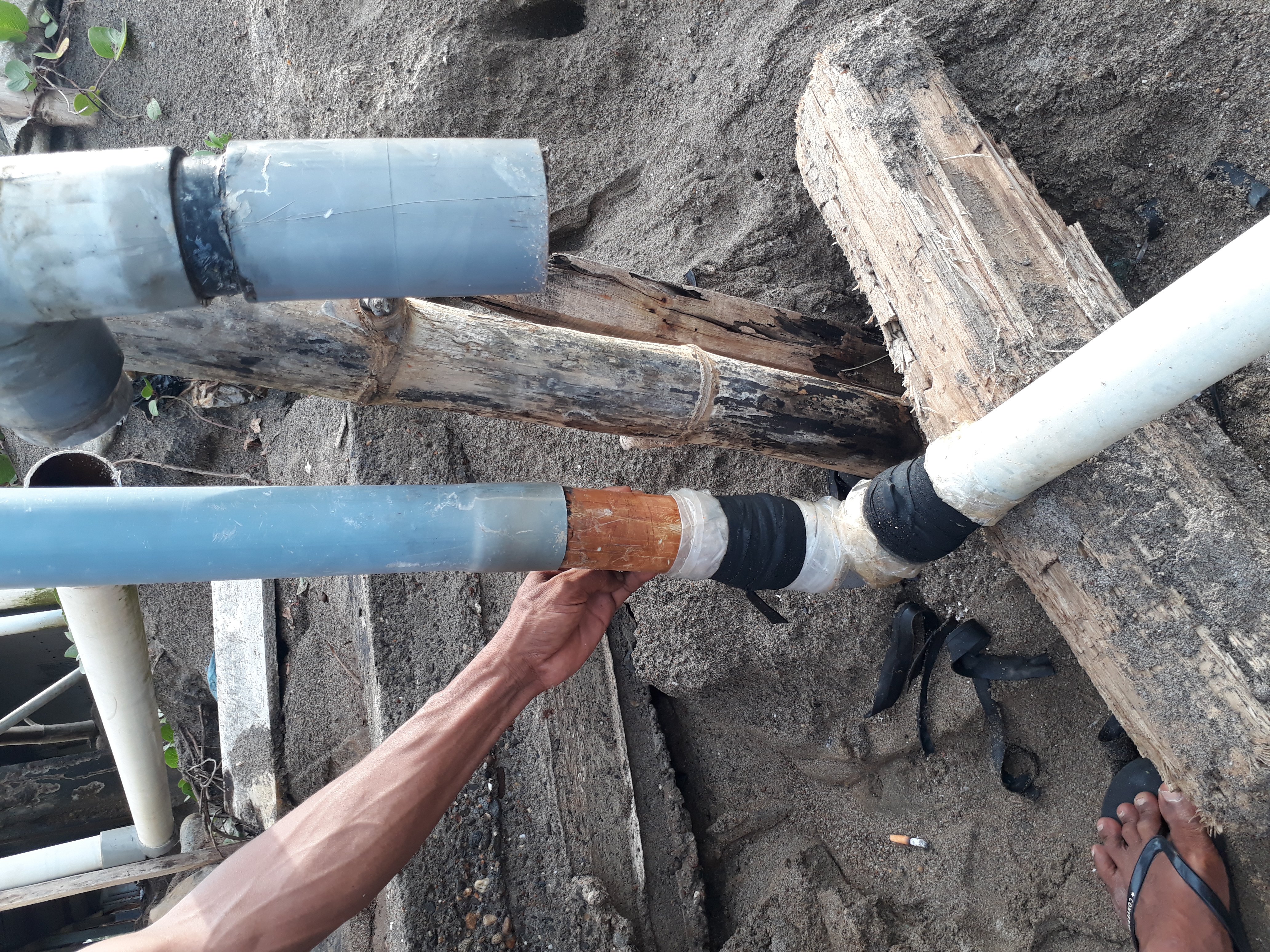 I do that. As for the pipe that I am repairing is the pipe for filling water at the shrimp nursery, because one thing you need to remember is that water is very important when doing shrimp nursery production, therefore I must immediately repair the damaged pipe quickly. For more information, all friends can see some of the pictures that I documented via the Android camera.