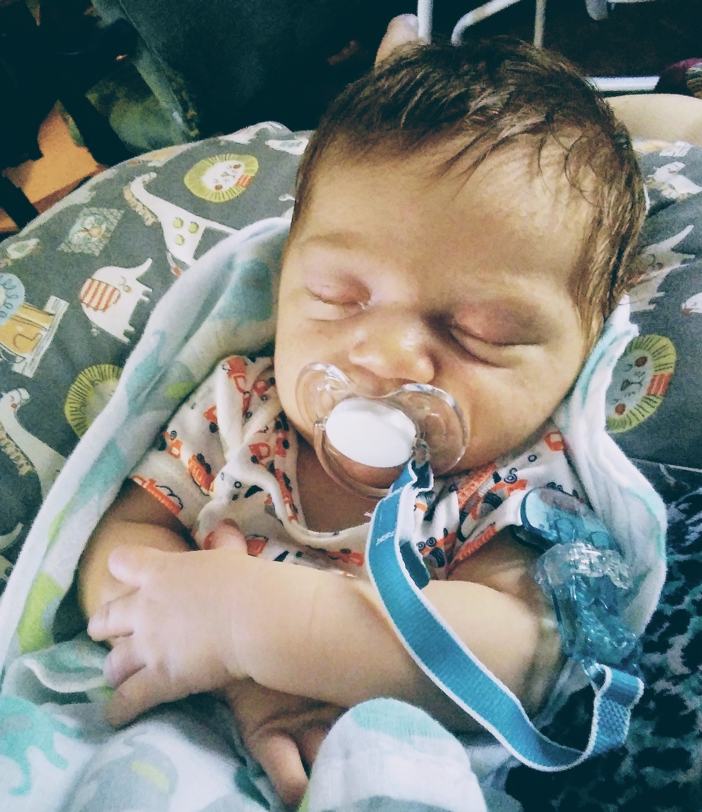 Today was a quiet, lazy day. We watched The Secret Life of Pets this morning while Maverick slept in my arms. We made some progress on sitting calmly in his swing awake and self-soothing. He even put himself to sleep for a few minutes without getting fussy. We need to be able to put him down sometimes so we can get things done, so today was a step in the right direction. We are also learning his "cues" better so that we have his bottle ready before he fully wakes and starts crying. Baby man wants to eat as soon as he wakes...there is no waiting. This also helps him sleep better at night. It doesn't take nearly as long to get him back to sleep if he doesn't wake up crying.
