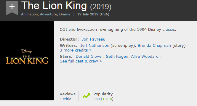 Hewoo, I have not published anything for a long time, just a lack of inspiration (it's not worth publishing shit). Before I go through this main story, I will say that it belongs to the furry (the term that defines the person who is interested in or deals with the work), I like those fluffy creatures, like to watch and draw. But now I will focus on watching. Yesterday I felt nostalgie and I decided that I will return to the movie which the first (and for this time only) once watched some 9 years ago ... I am talking about The Lion King (1994). It is not without reason that he announces the yearbook, why? Searching for the aforementioned title I came across: