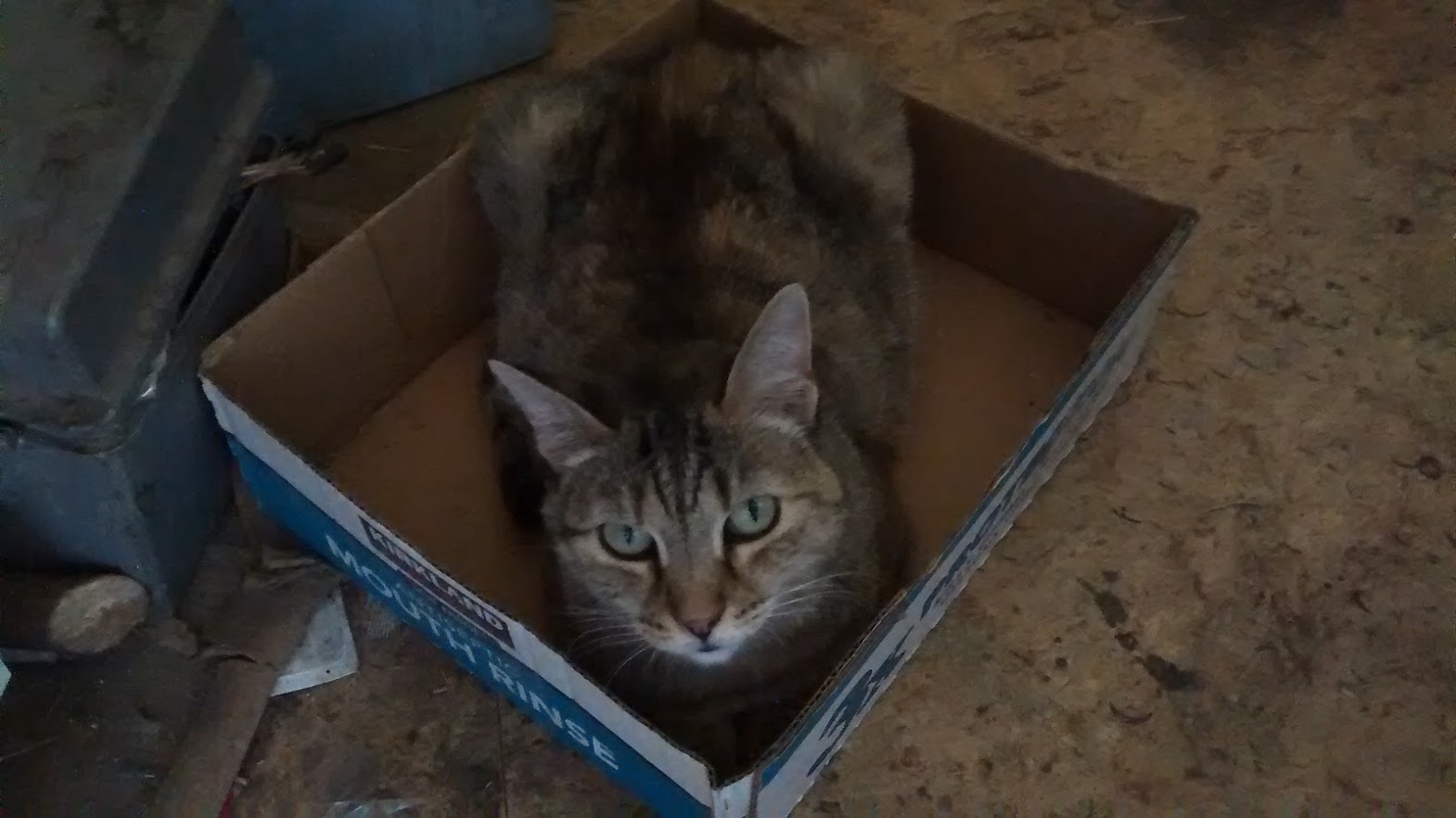 Then I heard a noise coming out of some cardboard boxes in my living room where I was sitting on a chair next to my fireplace. I look at where the noise came from and my cat, still weak, still had a big lump on her neck, but she was alive.