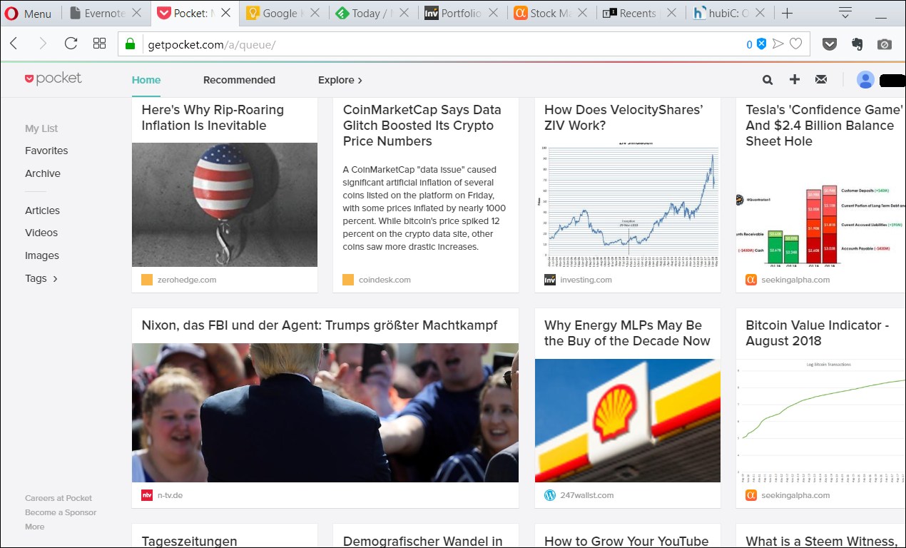 Feedly is a news (and blog) reader, your personalized newspaper, if you make your own news channel selection. (“RSS channels”.) Nice and handy, I used it a lot earlier. Works perfectly with Pocket and Evernote together. Unfortunately, I couldn’t find RSS feeds for Steemit blogs.