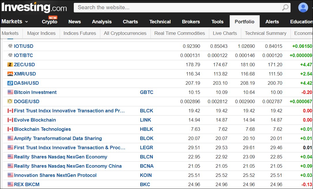 Investing.com website and mobile app is a real paradise for small investors, giving you real time price data for many investing products for free, news, tools, alerts etc. “Poor man’s Bloomberg/Reuters”, I would say. It also has a good cryptocurrency-section and extra mobile app for cryptos.