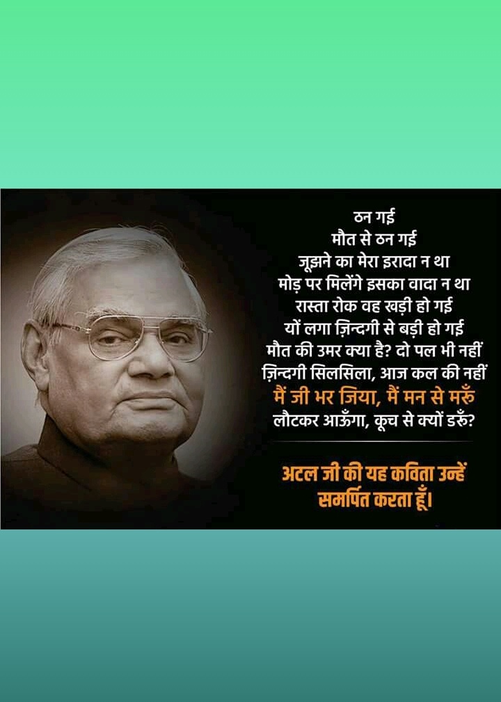 RIP ATAL BIHARI VAJPEYEEdineshjangid (25)in #life • 8 years ago Former Prime Minister of India shree ATAL BIHARI VAJPEYEE has passed away today.. लौट कर आऊंगा...... कूच से क्यों डरूं..... Return if possible.... #rip #post #indian
