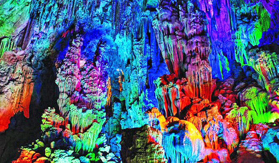 With more than 180 million years, the Reed Flute cave is a landmark and tourist attraction in Guilin, in the Guanxi region.