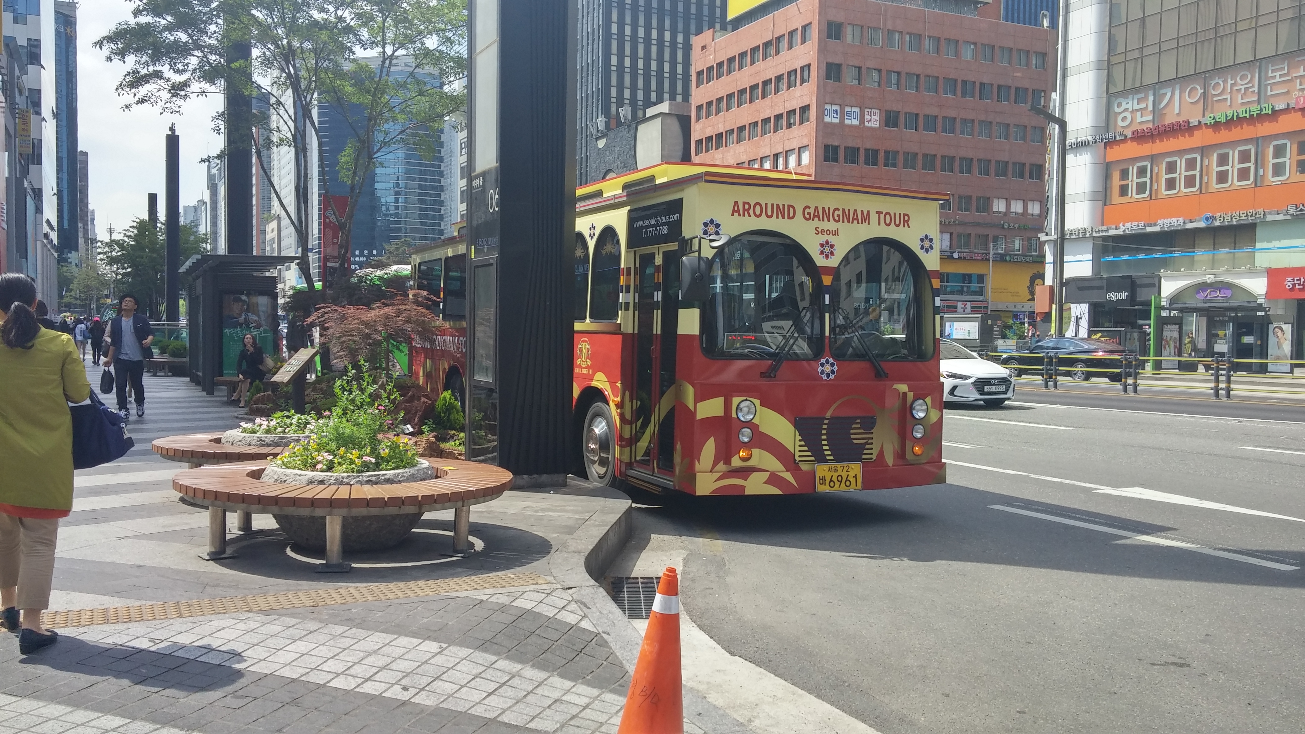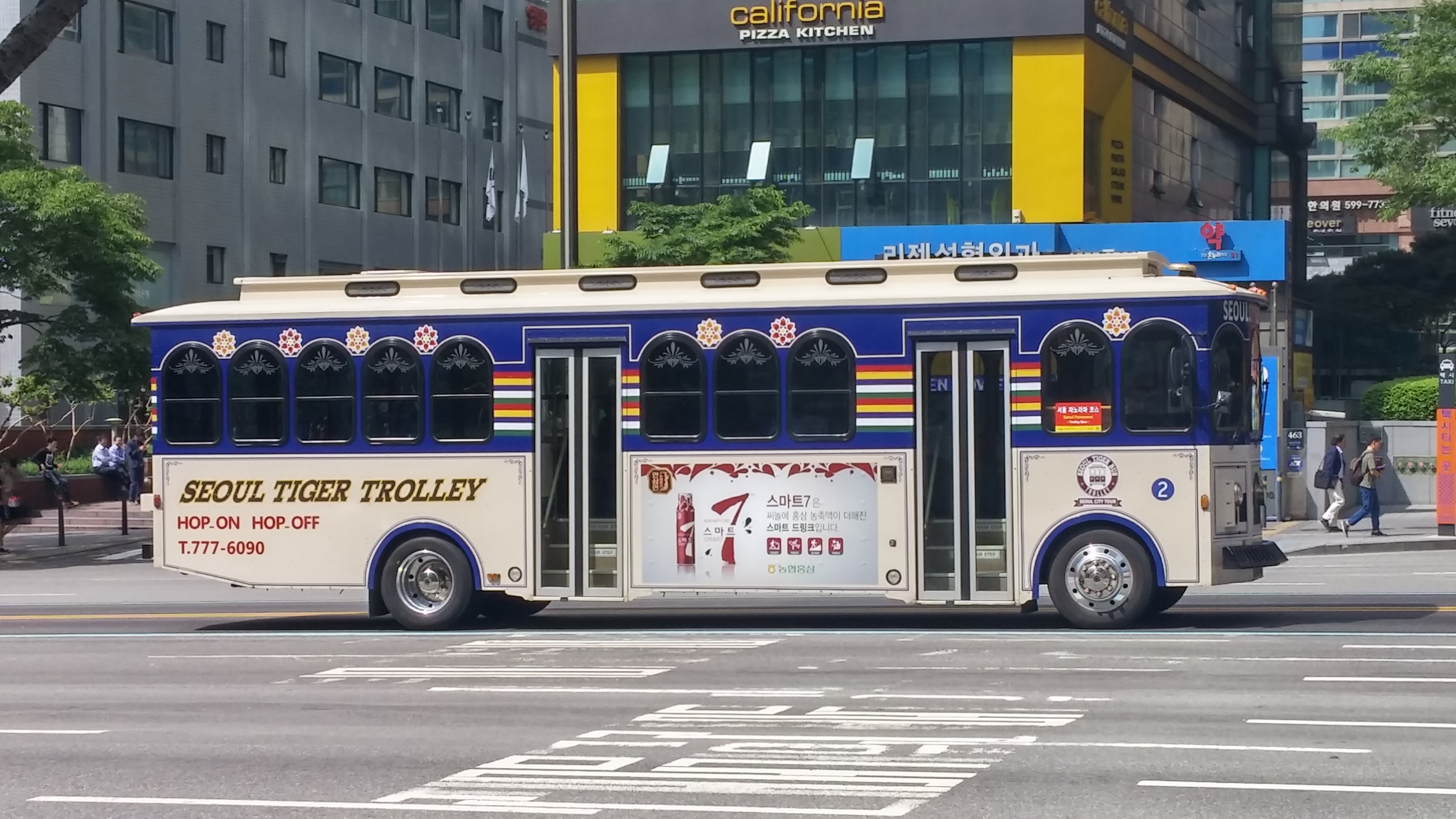 These pretty cars are tour buses in Seoul. このきれいな車はソウルにあるツアーバスです。