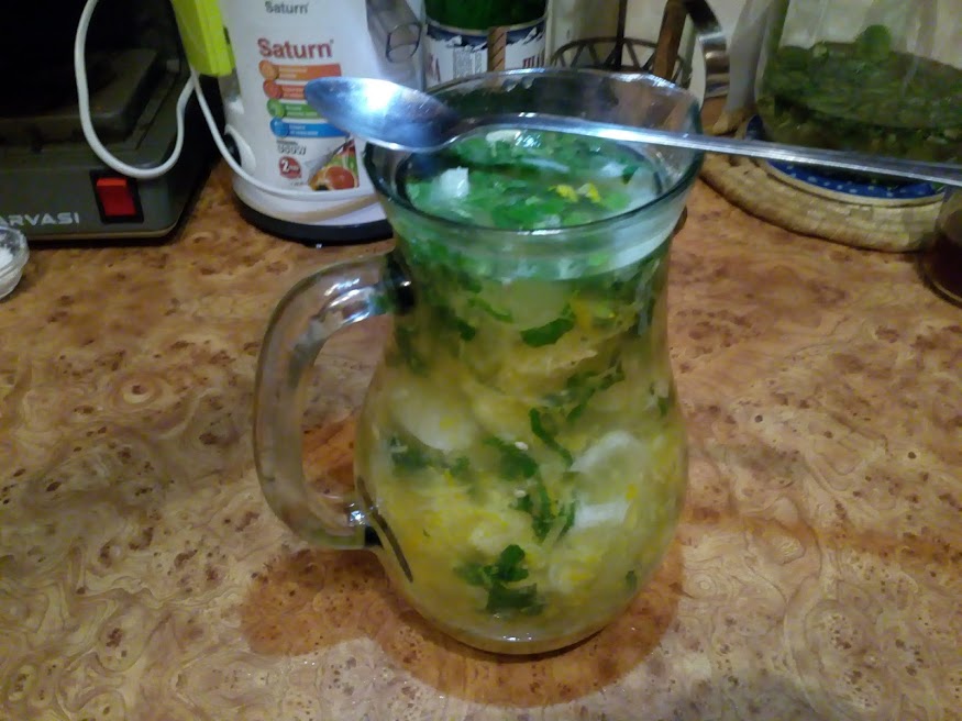 In hot you want to quench your thirst with something tasty and useful. Today we will prepare a delicious homemade lemonade with mint. For this we need: 5 liters of water, 2 lemons, 1 orange, 100 g of mint, sugar to taste.