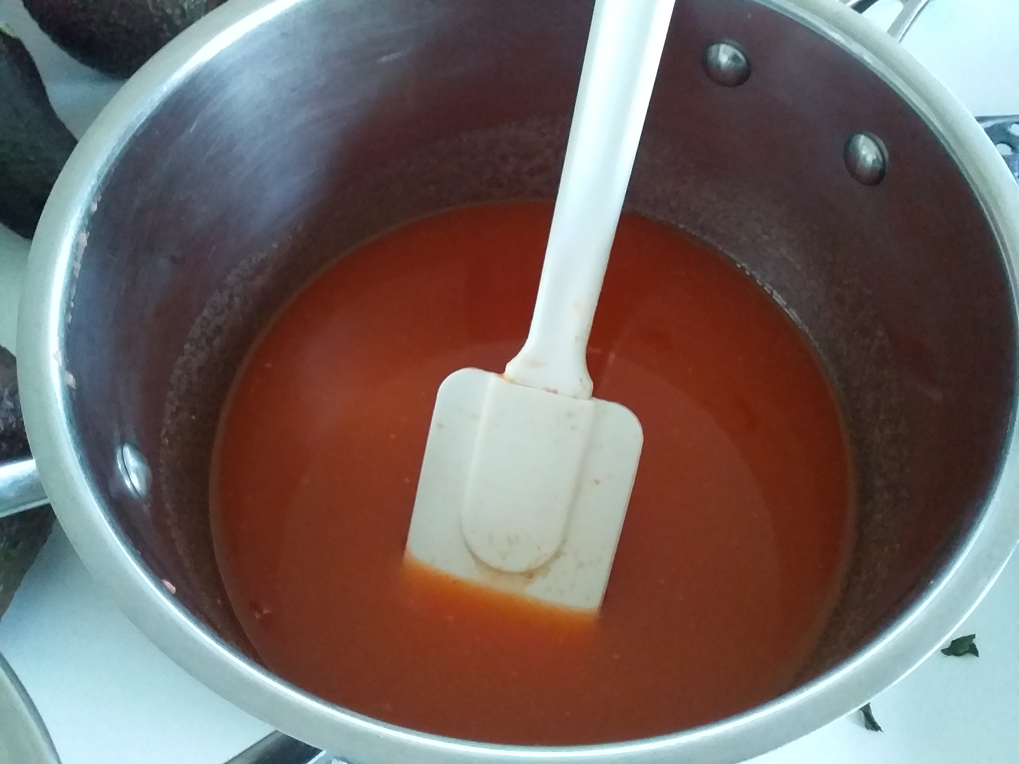 After you've strained the sauce it will still be very runny and thin so it's time to make it thicker! Put the sauce into a small saucepan on the stove and slowly simmer it till it's the thickness you want. Make sure to keep stirring it during this process to prevent burning.