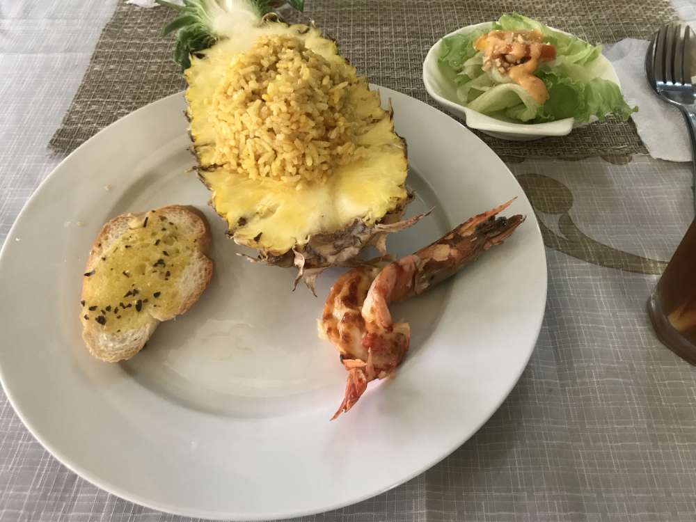 (Pineapple, rice, shrimp, butter, and just like that.)