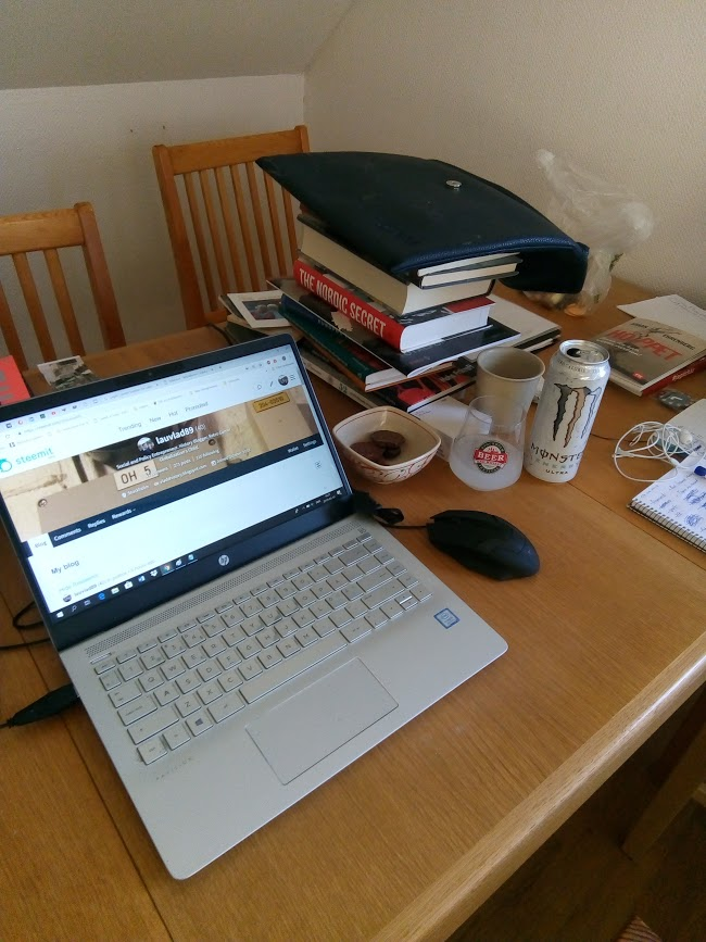 A photo of my working room. As you can see my whisky-beer glass is filled with Monster energy drink x).