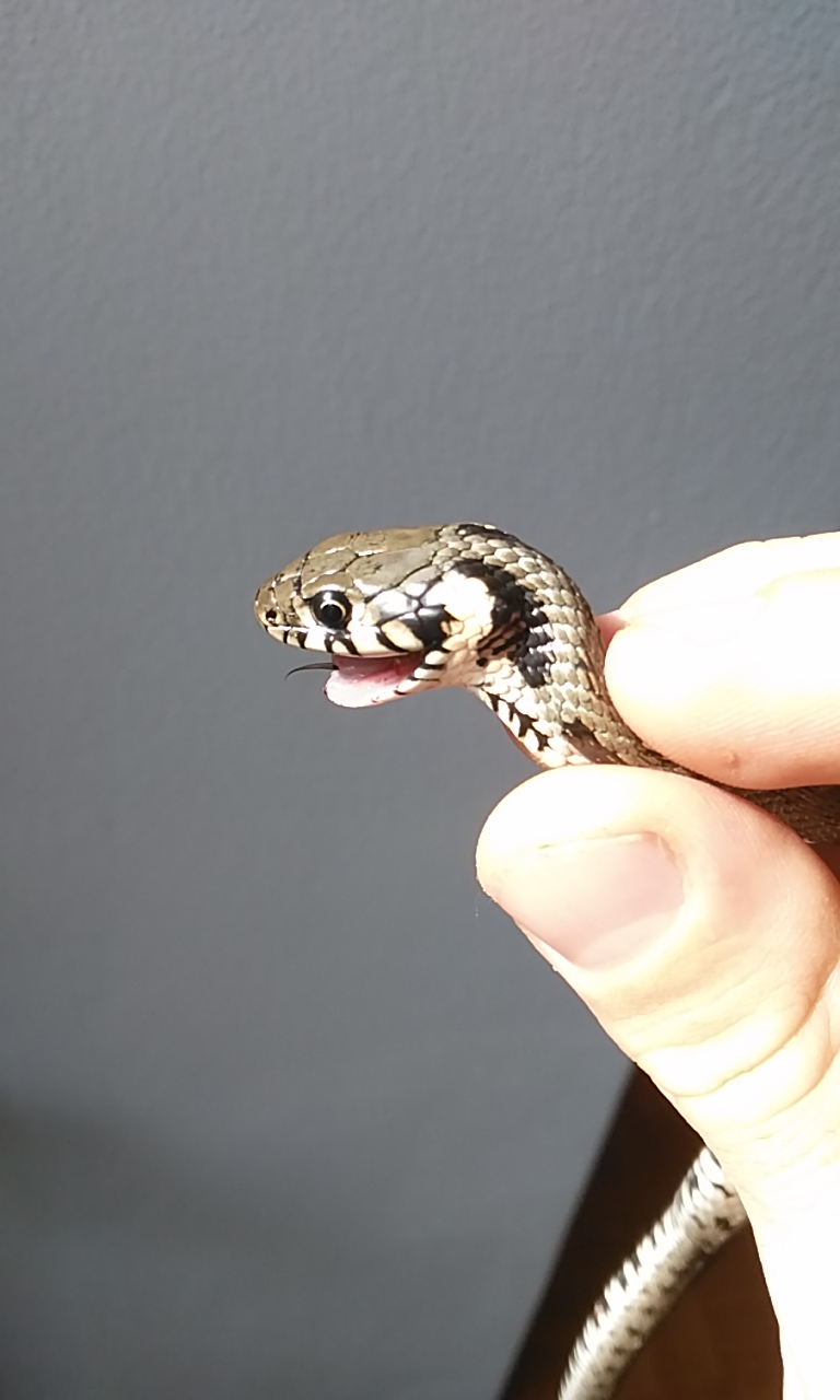 So I took it in my hands and after few shot second it started moving :) Then I took some photos, lock a cat and release snake.