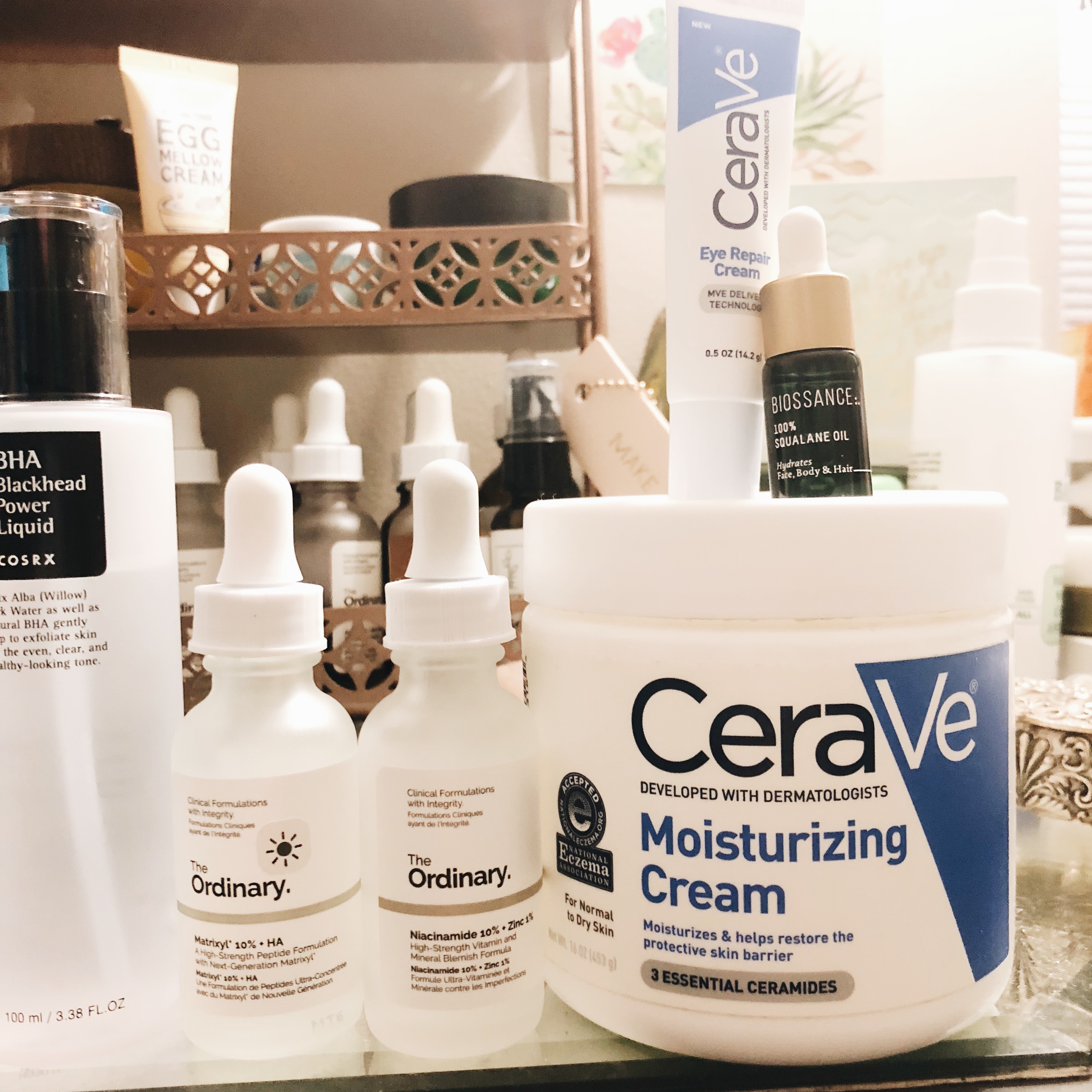 My skin has felt dry, hence the moisturizing cream (which is pretty heavy). My pores are looking good but I'm probably going to do another acid treatment tomorrow. I have a little bit of hormonal acne right now but nothing too bad.
